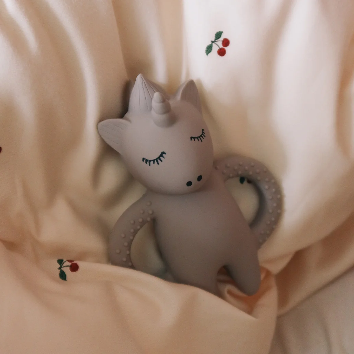 De bijtring van Konges Sløjd is een praktisch en stijlvol accessoire voor baby's tijdens de doorkomende tandjes. Met zijn geraffineerde ontwerp en hoogwaardige materialen biedt hij verlichting voor gevoelig tandvlees en bevordert hij de motorische ontwikkeling van baby's.