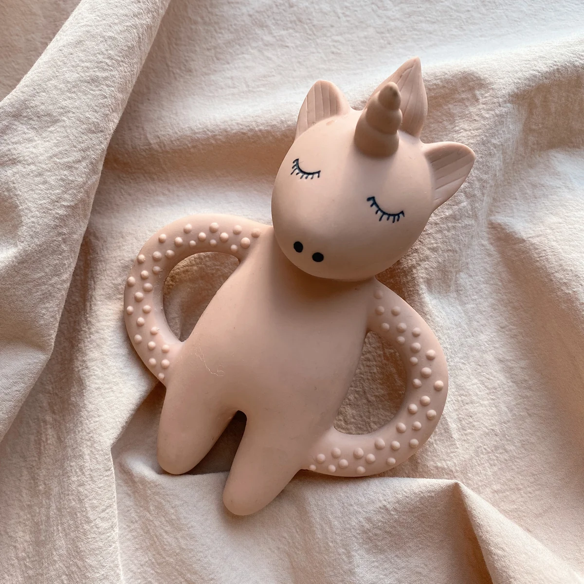 Het ontwerp van de bijtring is aantrekkelijk en kindvriendelijk. Met zijn verschillende vormen, texturen en kleuren stimuleert hij de nieuwsgierigheid van baby en bevordert hij de zintuiglijke waarneming en de oog-handcoördinatie.