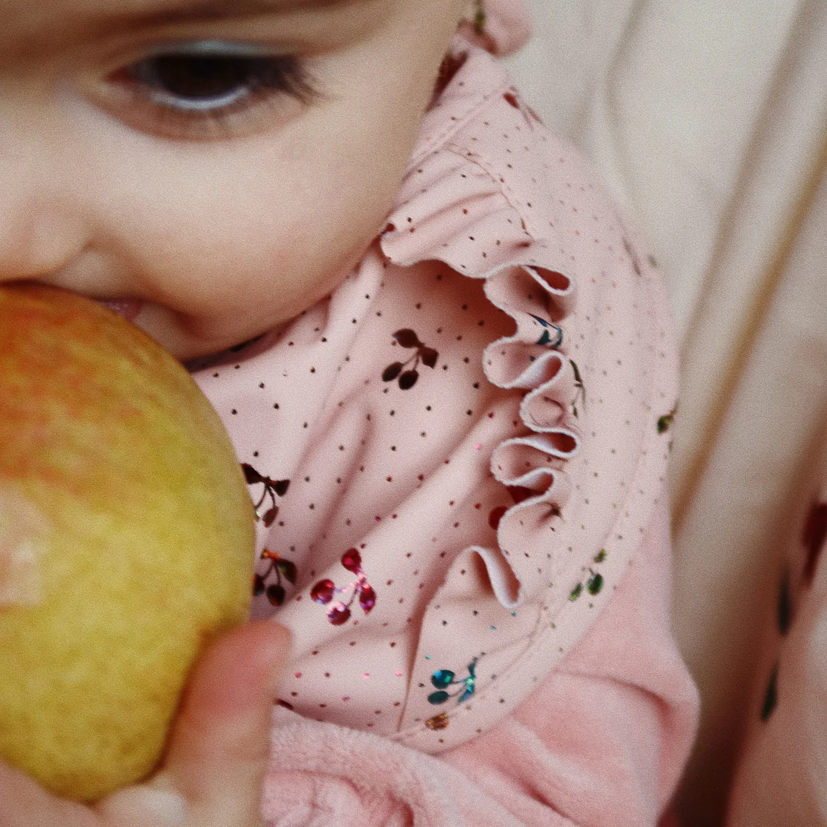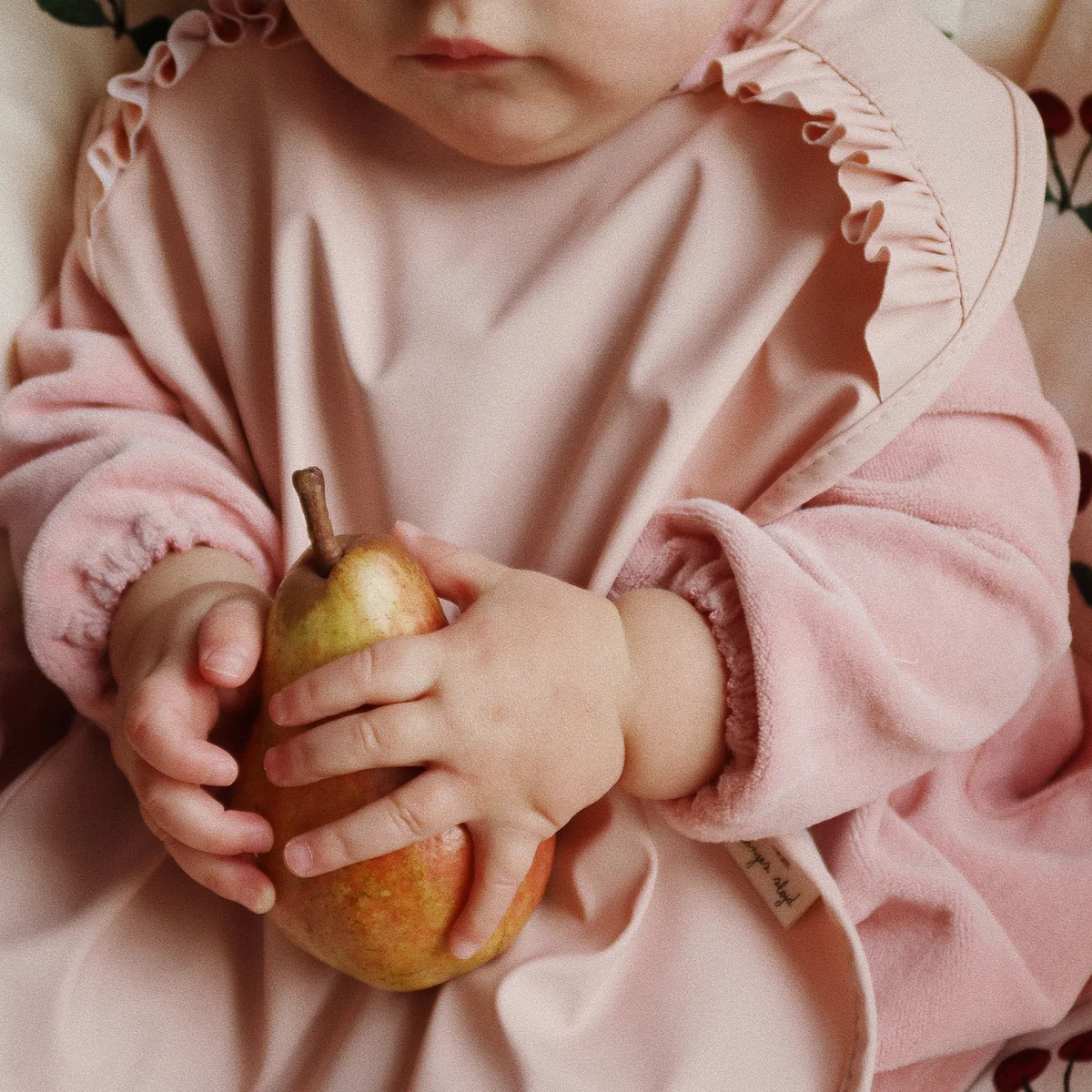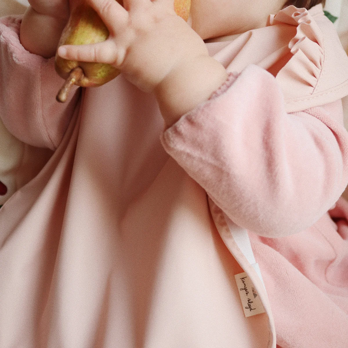 Konges Sløjd Het slabbetje met ruches maakt eten stijlvol en stressvrij. Met hun charmante ruches en waterafstotende oppervlak zijn deze slabbetjes perfect om de kleren van je kind schoon te houden en tegelijkertijd een vleugje flair aan hun outfit toe te voegen.