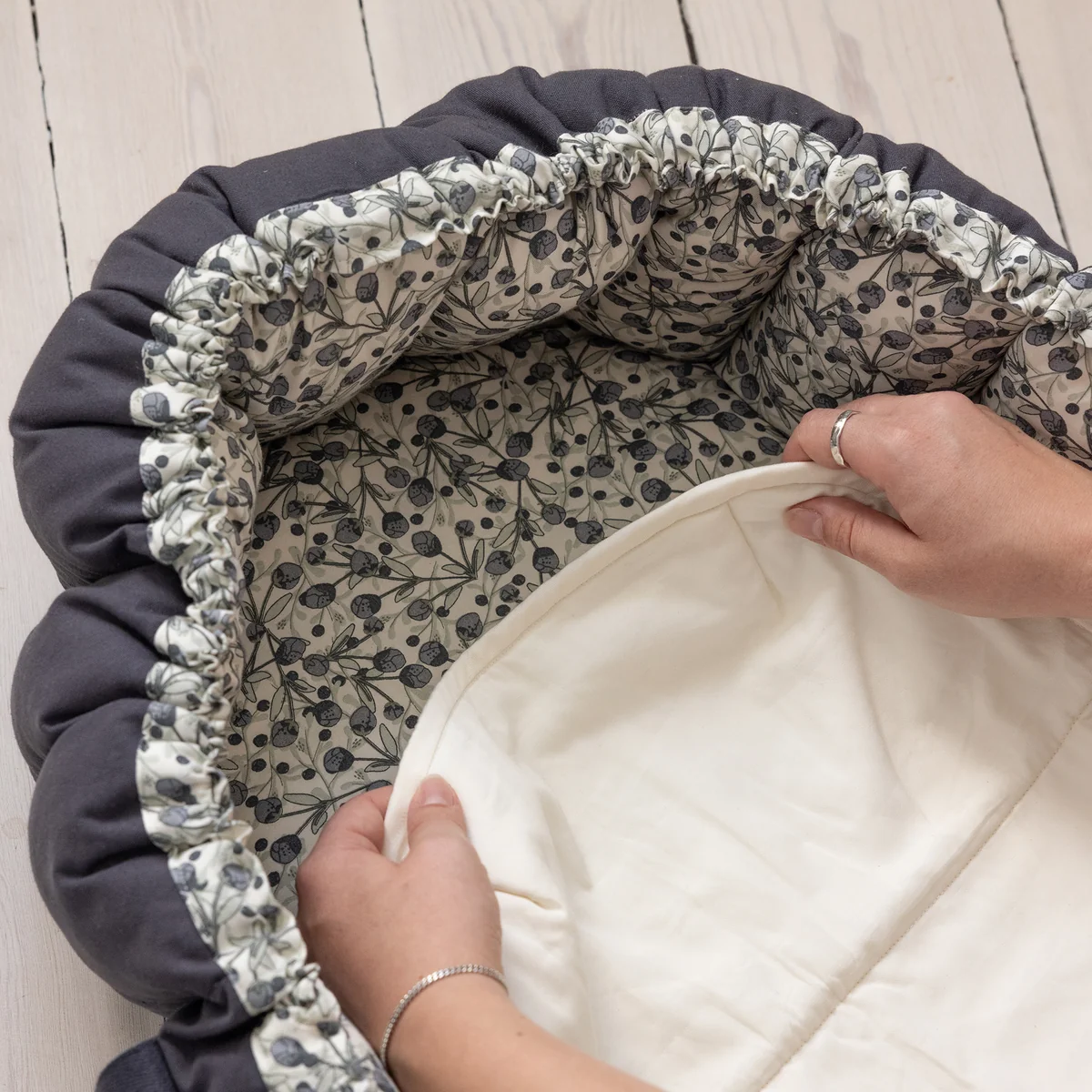 Het 3-in-1 babynestje van Sebra zorgt voor veel comfort. Het kan gebruikt worden als babylift tijdens het reizen - of als grote speelmat wanneer de zijkanten van het babynestje eenvoudig losgemaakt worden. Het knusse babynestje omhult de baby en biedt een veilige, vertrouwde plek.
