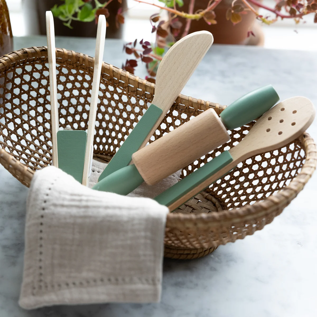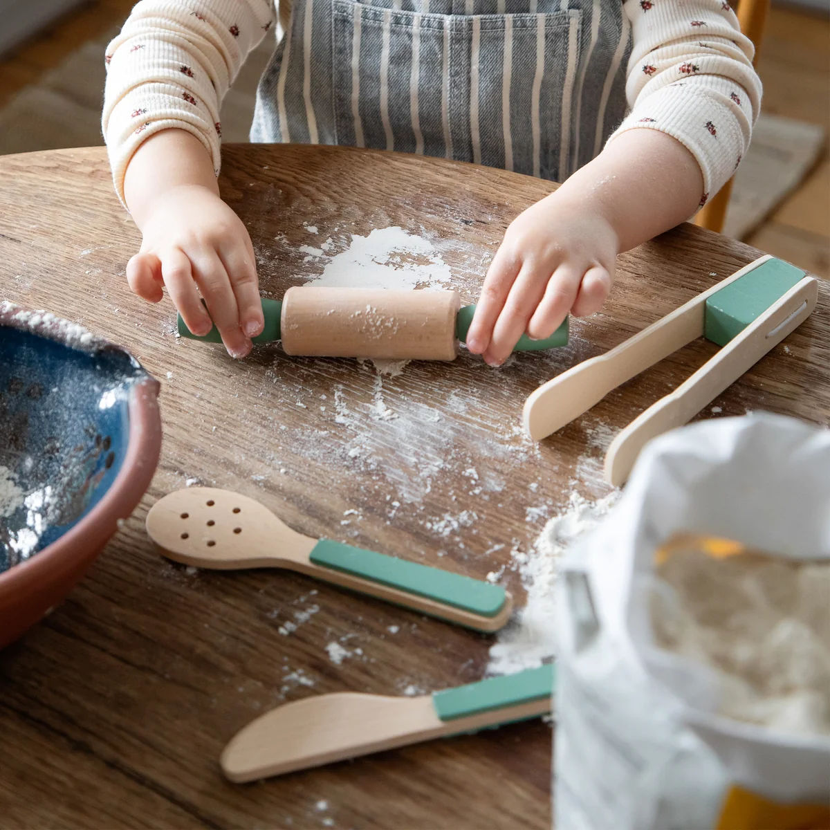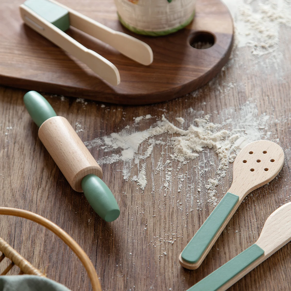 Sebra De keukenset van is het ideale accessoire voor jonge hobbykoks! Deze 4-delige set van hoogwaardig MDF en beukenhout bevat een mes, een lepel, een deegroller en een tang. Elk keukengerei is veilig en robuust, perfect voor kinderen vanaf één jaar. Met deze set kunnen kinderen spelenderwijs hun kookkunsten ontdekken en hun fijne motoriek ontwikkelen.