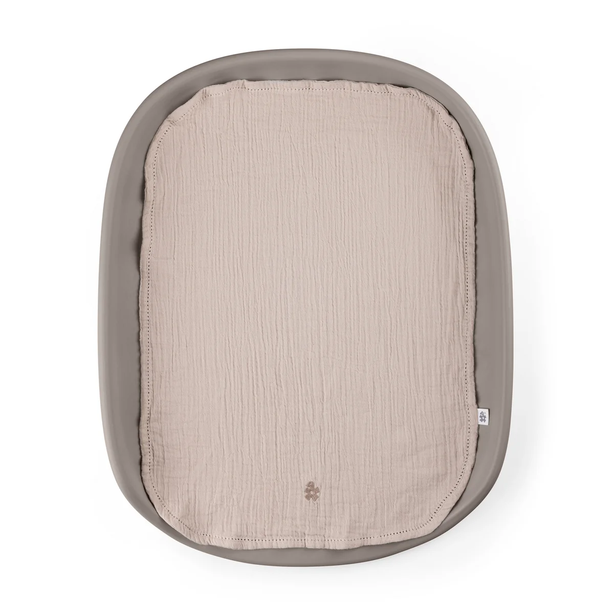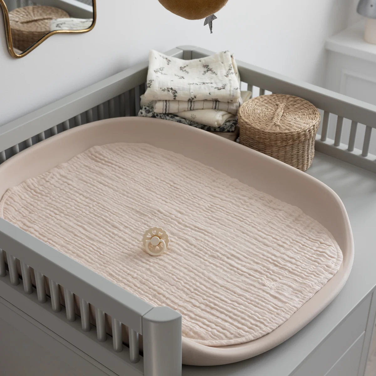 De zachte textuur van de mousseline stof geeft baby een knus en comfortabel oppervlak tijdens het verschonen. Het royale formaat van het aankleedkussen biedt voldoende ruimte en comfort om een aangename luieromgeving te creëren.
