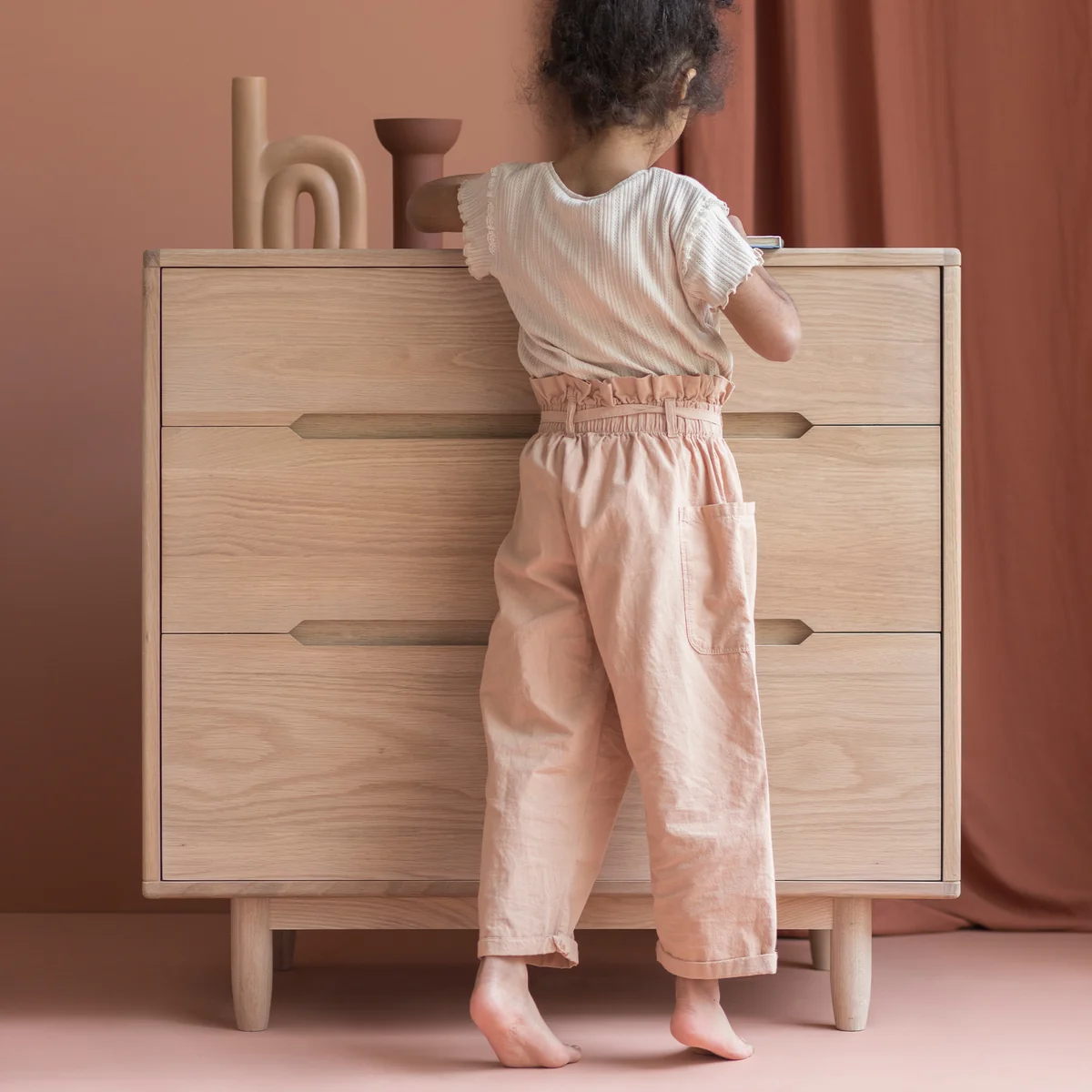 De Pure lijn van Nobodinoz is de beste combinatie van stijl, duurzaamheid, veiligheid en comfort. De Pure ladekast is een stijlvol meubelstuk dat zowel in de kinderkamer als in de woonkamer of gang zijn plaats vindt. Gemaakt van eikenhout, het creëert een natuurlijke, warme sfeer in de kamer en is extreem ruim dankzij de vier lades.