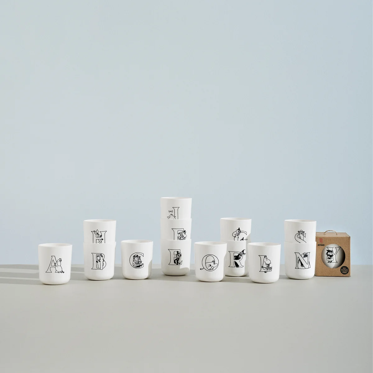 De Moomin ABC mok van de Deense fabrikant Rig-Tig by Stelton is gebaseerd op de originele brieven van de schrijfster Tove Jansson. De mok is verkrijgbaar in verschillende uitvoeringen. Elke letter is versierd met een grappig personage uit de wereld van de Mumins. De mok heeft een inhoud van 0,2 l en is gemaakt van robuuste ABS-kunststof. Moomin ABC is vrij van BPA, ftalaten en andere schadelijke stoffen. Het is ook magnetron- en vaatwasmachinebestendig.