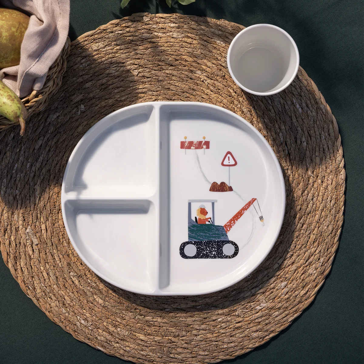 Bord van kunststof met schattig motief en gescheiden vlakken