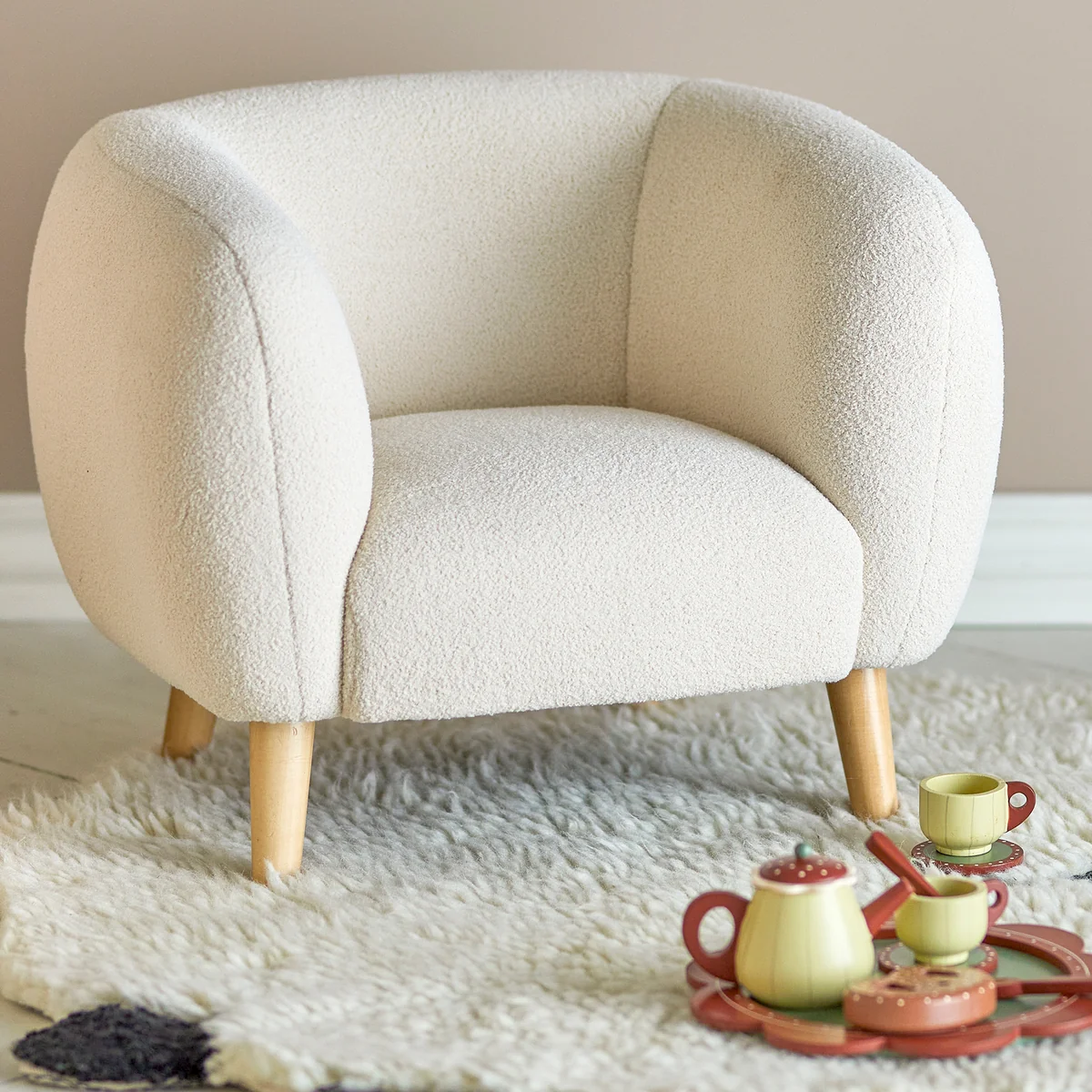 Bloomingville De Mini - Cade loungestoel is een stijlvolle en comfortabele fauteuil speciaal ontworpen voor kinderen die zowel functioneel als esthetisch is. De Cade loungestoel is gemaakt van stevig maar zacht materiaal dat geschikt is voor kinderen. De bekleding biedt comfort en ondersteuning tijdens het zitten.