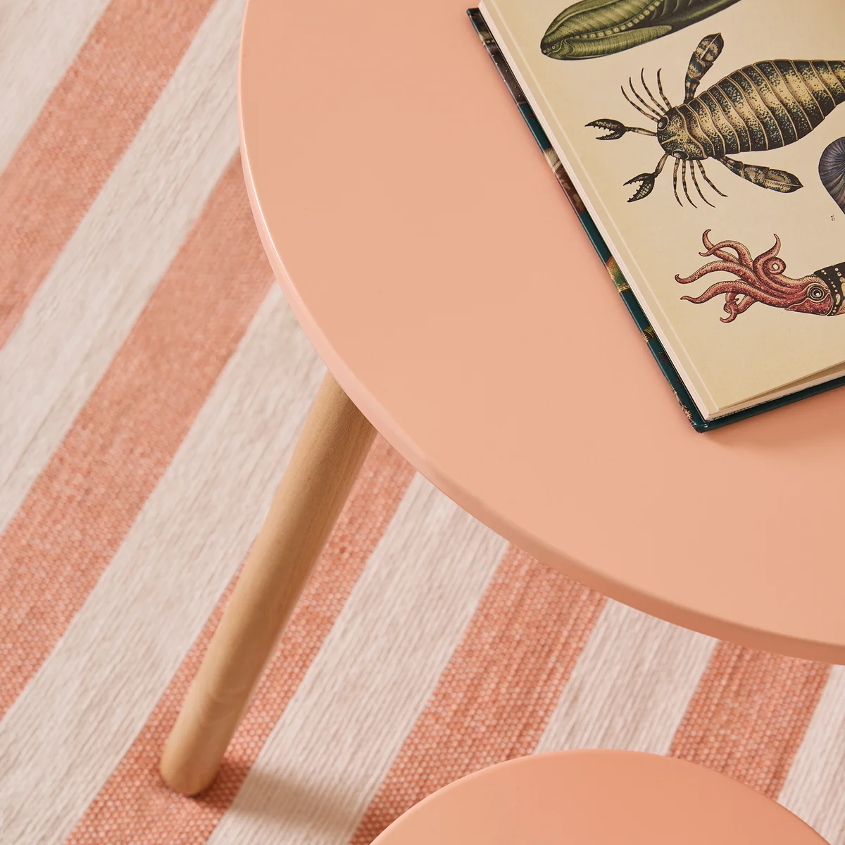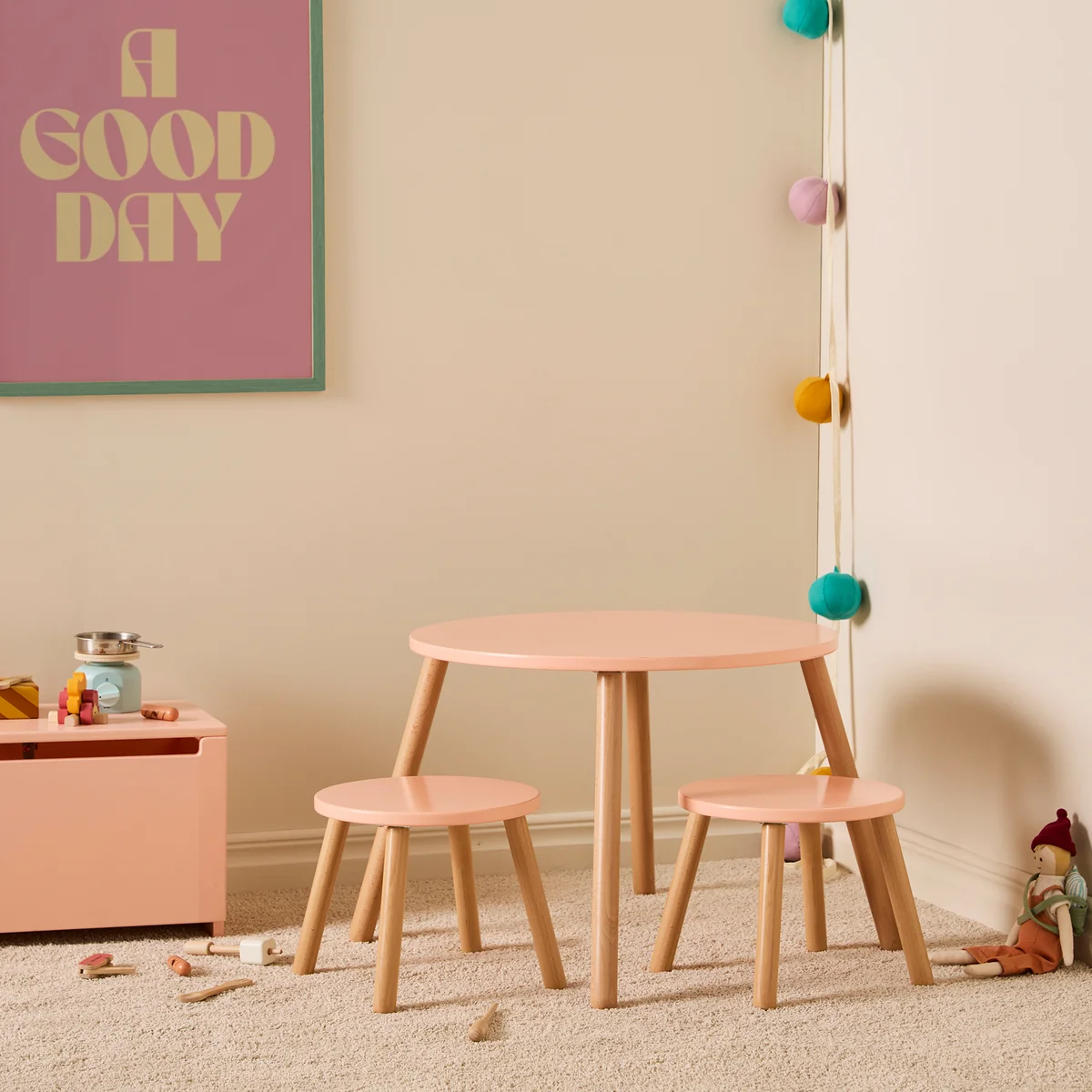 De bijpassende krukjes bieden niet alleen een comfortabele zitplaats, maar ook extra opbergruimte onder de zitting - ideaal voor speelgoed, boeken of kunstmaterialen. Zo blijft de kinderkamer netjes en opgeruimd terwijl ze zich verliezen in hun eigen kleine wereld.