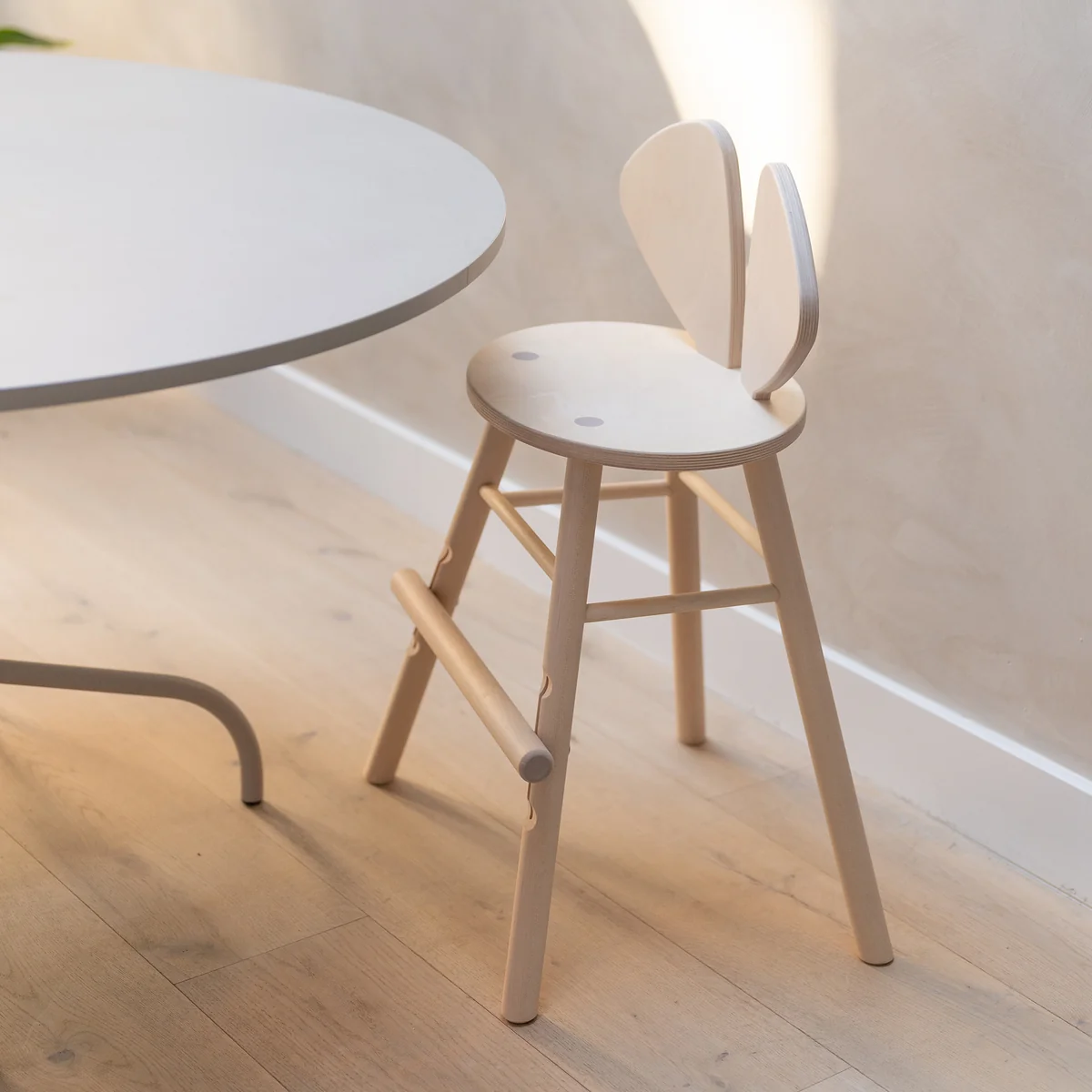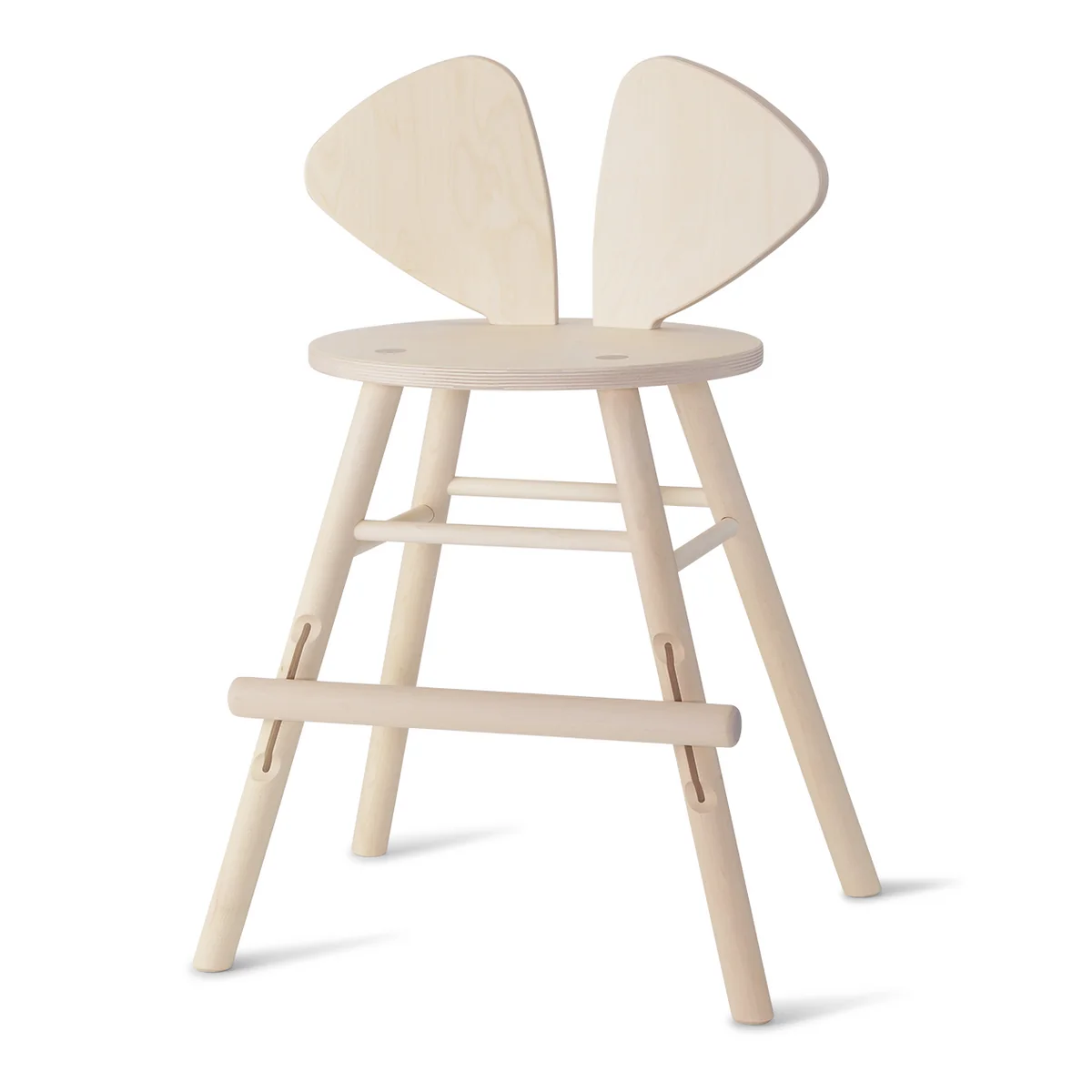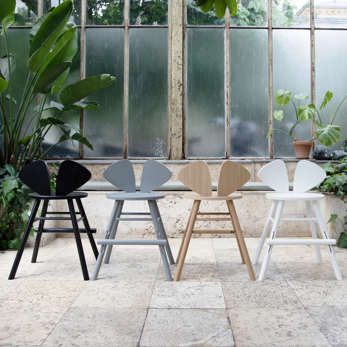 De Mouse Junior stoel van Nofred wordt gekenmerkt door zijn afgeronde randen en elegante vorm en biedt plaats aan een al wat ouder kind van 3 tot 9 jaar. De rugleuning doet denken aan muizenoren, waar de Mouse serie zijn schattige naam kreeg. Naast de stoel omvat de serie ook tafels, banken en stoelen in verschillende hoogtes voor kinderen in verschillende leeftijdsgroepen. Bijzonder leuk: dankzij zijn hoogte kan de Junior stoel gemakkelijk aan de keuken- of eettafel voor de volwassenen worden geplaatst.