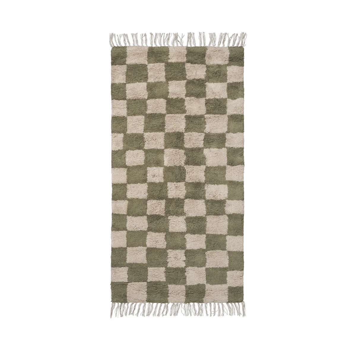 Het Mara kindertapijt van Ferm Living brengt levendige contrasten in de kamer met zijn opvallende ruitpatroon en decoratieve franjes. Het grafische ontwerp is zowel speels als evenwichtig - een modern statement met een kindvriendelijk karakter. Het zachte, getufte oppervlak zorgt voor een aangenaam gevoel en maakt het tapijt tot een gezellige alledaagse metgezel. Mara is onderhoudsvriendelijk en decoratief en combineert functie met gedurfd design - voor kinderkamers met persoonlijkheid.