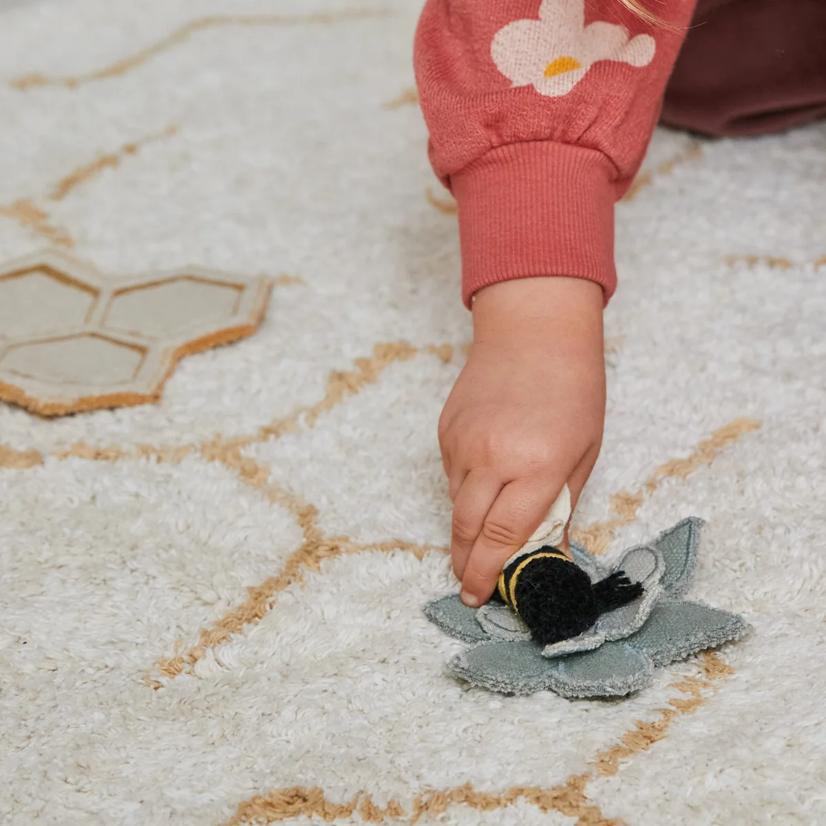 Het Pollination speelkleed met speelaccessoires van Lorena Canals dompelt kinderen onder in een fascinerende wereld van creativiteit en speelsheid. Dit unieke tapijt is niet alleen een comfortabele vloerbedekking, maar ook een inspirerende speelomgeving voor kleine avonturiers.