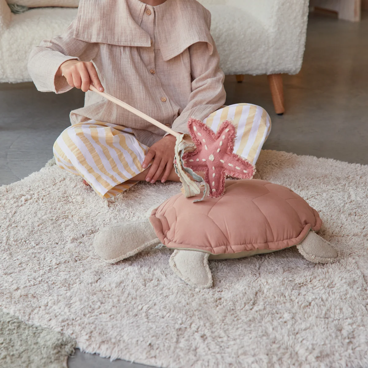 Het Sea Turtle tapijt van Lorena Canals presenteert zich in een mooi en kleurrijk schildpaddessin. Het getufte oppervlak van het zachte katoenen tapijt vormt de perfecte basis voor spannende en opwindende speelmomenten in de kinderkamer. Het tapijt is ook zeer geschikt voor kleine pauzes. Het Sea Turtle tapijt past bij elke bestaande woninginrichting.