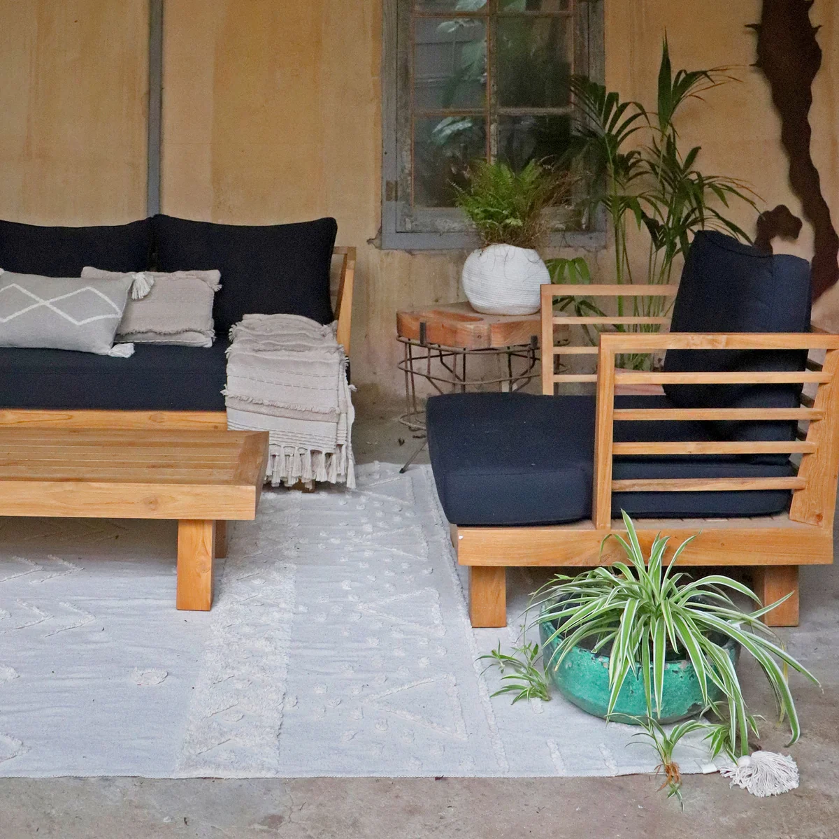 Ervaar de verbinding met de natuur met het Tribu vloerkleed van Lorena Canals . Dit met liefde handgemaakte tapijt van natuurlijk katoen combineert aardse kleuren en duurzame materialen. De nieuwe editie van het Azteca-design biedt een rustige, etnische look. Het vloerkleed is veelzijdig en kan worden gebruikt als vloerkleed, sprei, wandkleed, picknickkleed of tafelkleed - en is wasbaar voor onderhoudsvriendelijke elegantie.