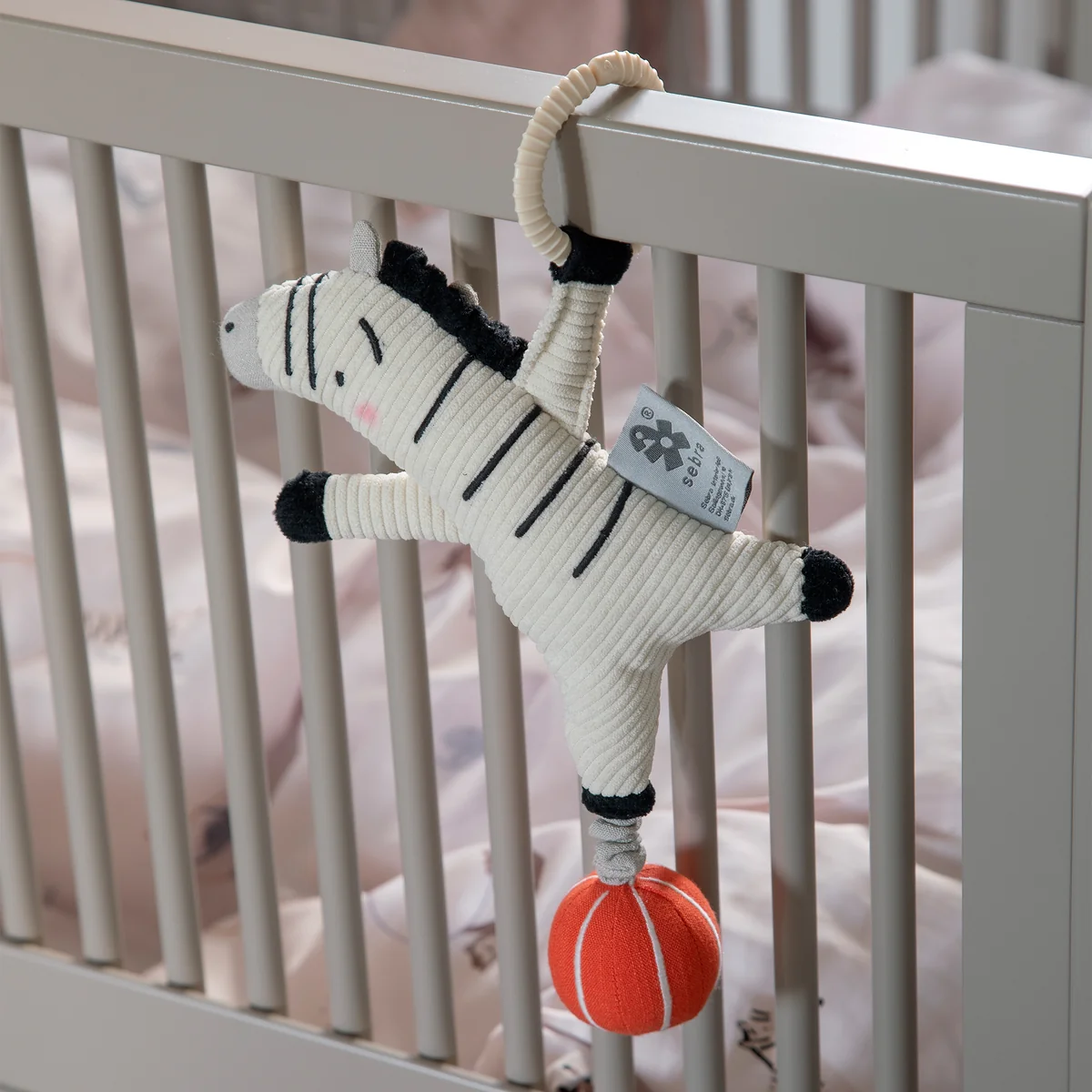 Het muziekdoosje van Sebra is een praktisch, gezellig hulpmiddel voor het ledikant. Het muziekdoosje kan aan het bedje worden bevestigd met de praktische klittenbandsluitingen en speelt een zacht melodietje dat de baby in slaap begeleidt. Tegelijkertijd is het muziekdoosje de ideale knuffelvriend, die spannende en opwindende verhalen uit de wildernis vertelt.