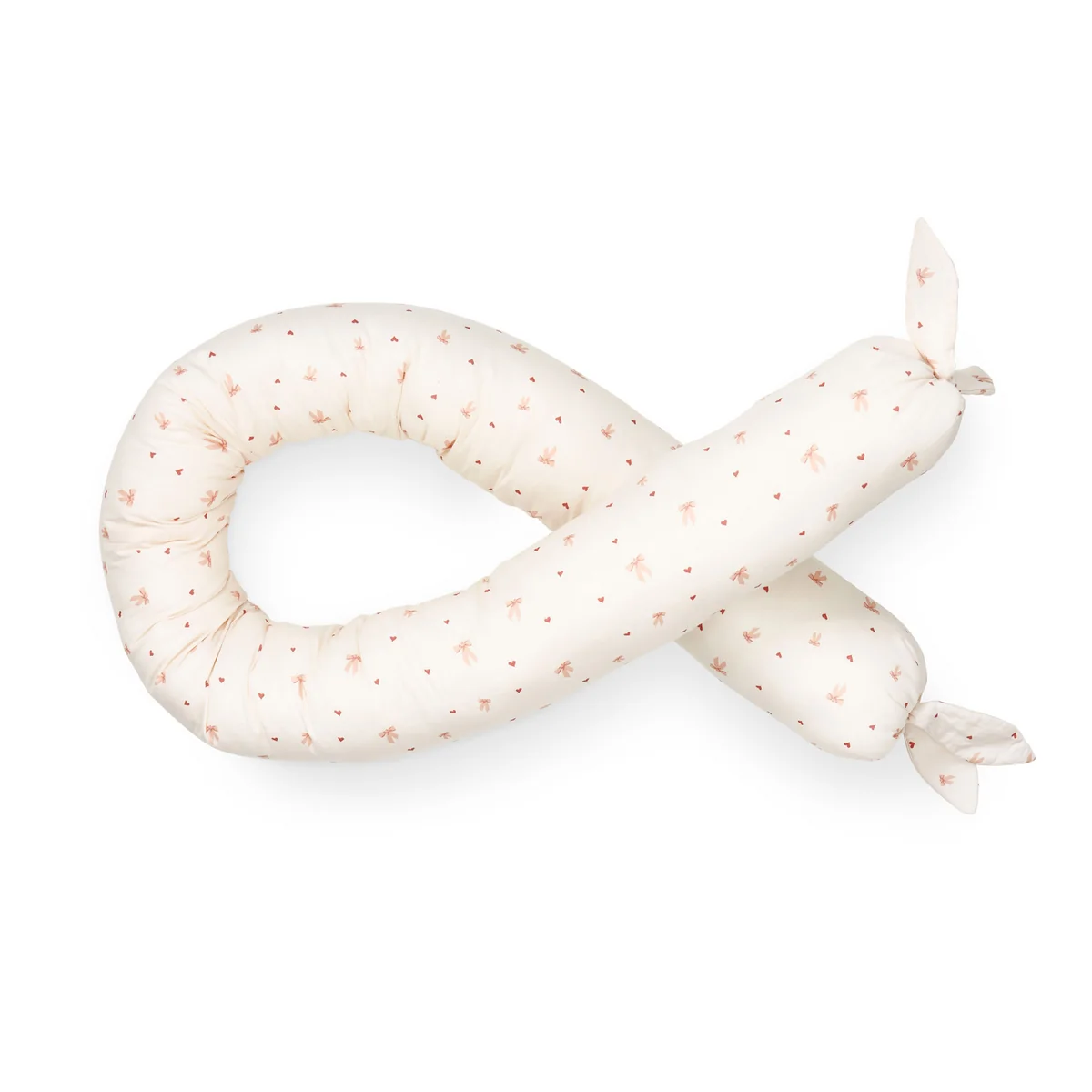 De flexibele vorm maakt veelzijdig gebruik mogelijk: als bedbumper, positioneringshulp of knusse rand tijdens het spelen. Onderhoudsvriendelijk, duurzaam en heerlijk zacht - een must-have voor ouders die waarde hechten aan stijl en veiligheid.