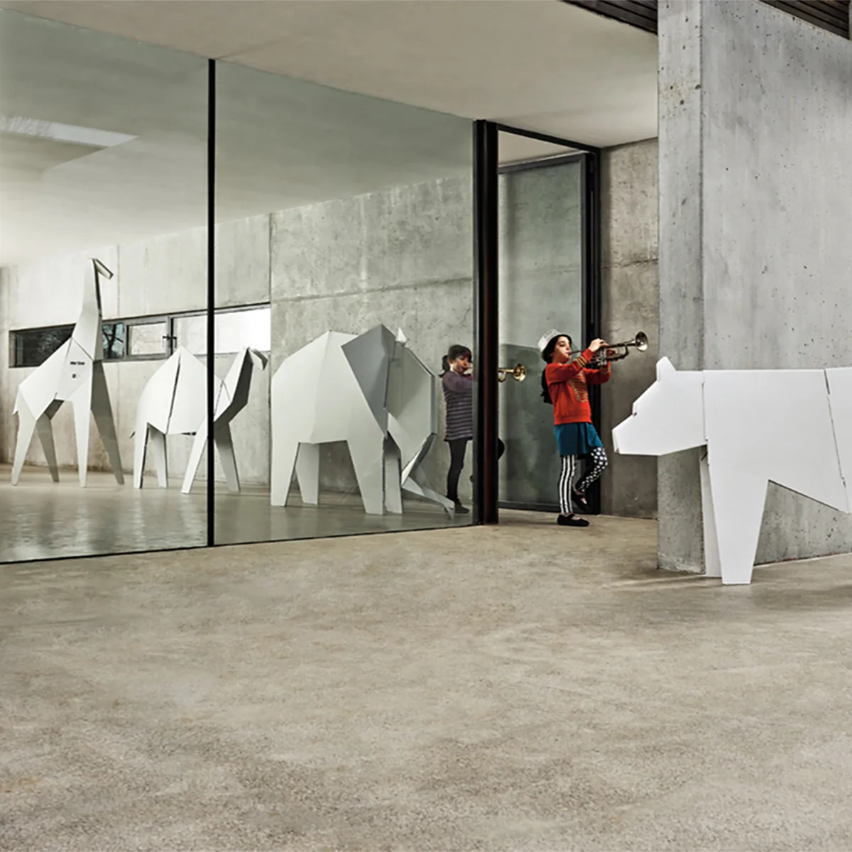 Het idee voor de kartonnen dieren komt van de Catalaanse ontwerper Martí Guixé, die al klanten heeft opgewonden met andere ongewone ideeën. Beren, olifanten, dromedarissen, giraffen of walvissen zijn bijzondere decoratieobjecten die de aandacht trekken. De verschillende afmetingen van de dieren maken het mogelijk om ze op verschillende manieren te installeren en op een plank te plaatsen of de hele kinderkamer te vullen.