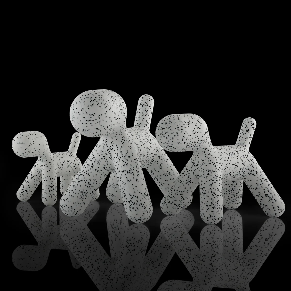 De speelgoedhond verovert de wereld van designliefhebbers, huiskamers en kinderkamers nu als puppydalmatiër. Puppy is een uiterst decoratief plastic object dat niet alleen zorgt voor veel plezier in de kinderkamer, maar ook geschikt is voor buitengebruik. De robuuste puppy wordt geproduceerd in een complexe rotatieprocedure uit polyethyleen. De designhond is verkrijgbaar in verschillende maten en andere kleuren.