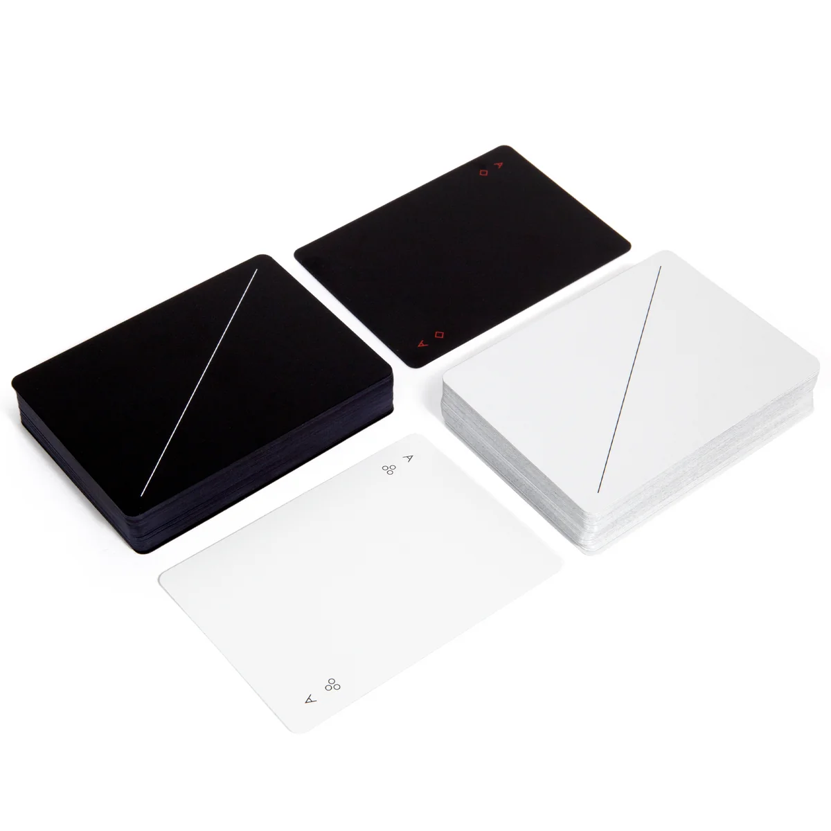 De Minim speelkaarten van de Areaware inspireren met hun moderne, minimalistische ontwerp terwijl ze dezelfde ouderwetse speelvreugde behouden. De eenvoudige geometrische symbolen van harten, ruiten, klaveren en schoppen zijn teruggebracht tot het strikt noodzakelijke. Hetzelfde geldt voor de ruggen, die versierd zijn met een eenvoudige diagonale lijn. De kaarten zijn gemaakt van een materiaalmix van papier en PVC.