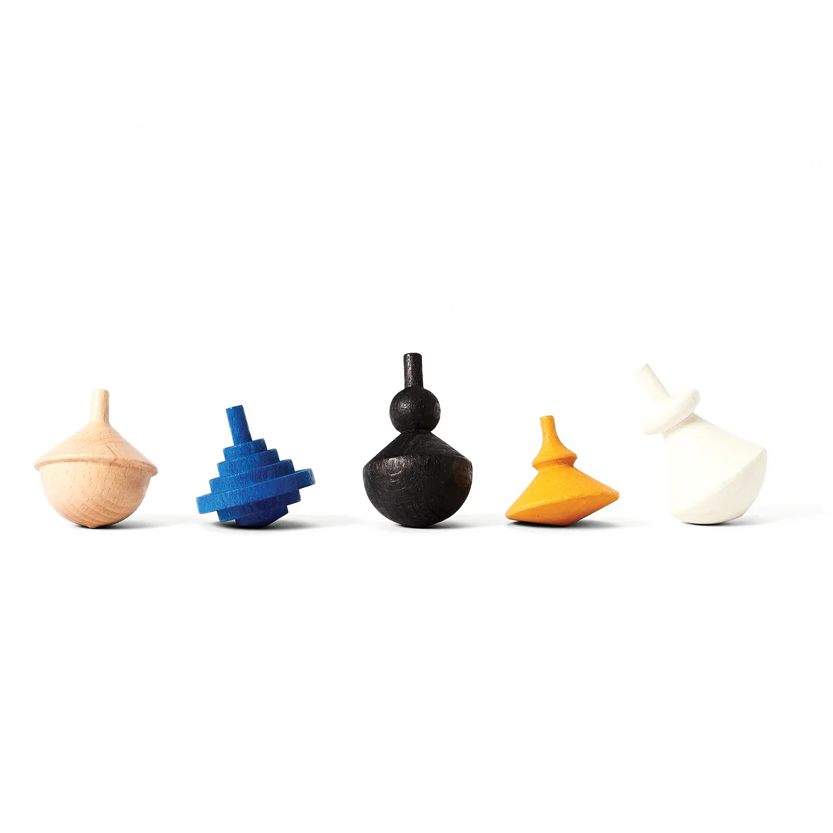 De Spinning Tops houten tollen van de fabrikant Areaware inspireren met hun onconventionele ontwerp! Ontwerper Pat Kim gebruikt restjes gedraaid materiaal voor de productie van de houten tollen. De Spinning Tops set bestaat uit vijf tollen, waarin materiaalexperimenten en traditioneel handwerk op een onderhoudende manier samengaan. De Spinning Tops kan op een klassieke manier worden gedraaid of op de commode worden geplaatst als een mooi, ongewoon decoratief element.