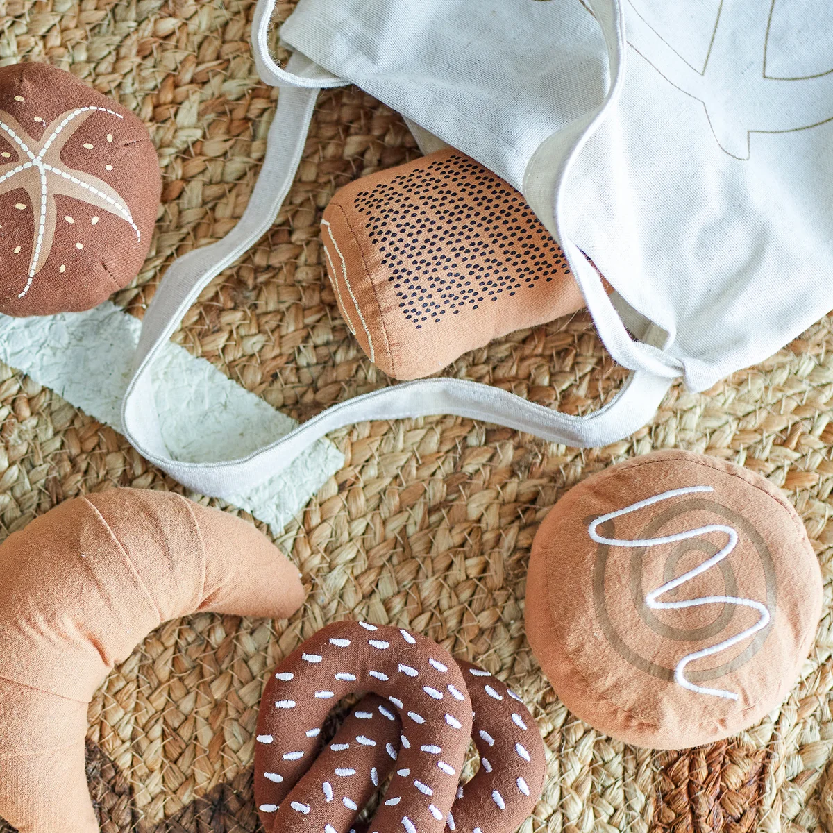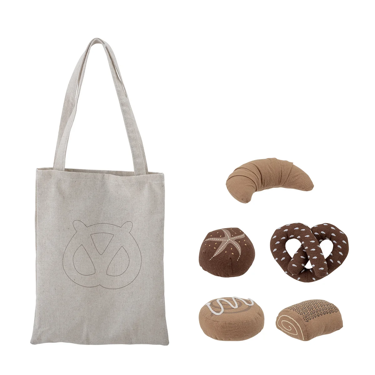 De Mini Snoore speelset van Bloomingville is perfect voor het ensceneren van kleine boodschappen of ontbijtervaringen. De speelset bevat 5 soorten brood en een schattige bakkerszak. De knuffel is gemaakt van katoen en zal elk kind met vreugde vervullen.