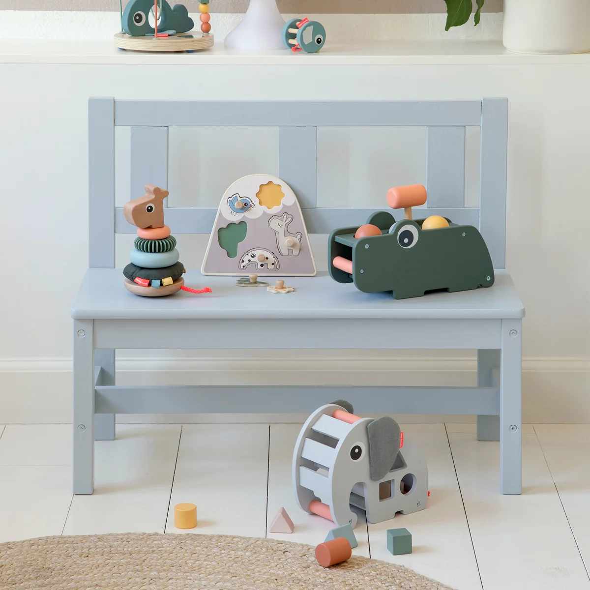 De tikbank heeft kleurrijke ballen en een kleine houten hamer. Kinderen kunnen de ballen door de openingen aan de bovenkant van de krokodil tikken en zo hun hand-oogcoördinatie en fijne motoriek verbeteren.