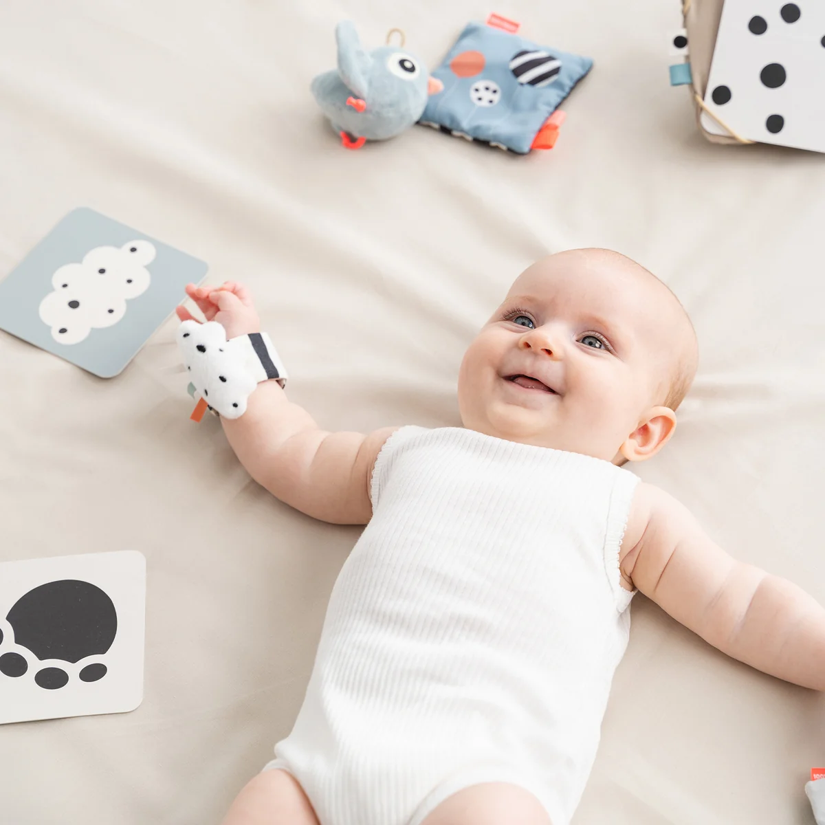 De Done by Deer rammelaararmband is een schattig en veelzijdig accessoire voor de allerkleinsten. Met zijn geraffineerde ontwerp is deze rammelaararmband ontwikkeld om de zintuigen van baby te stimuleren en de fijne motoriek te ontwikkelen.