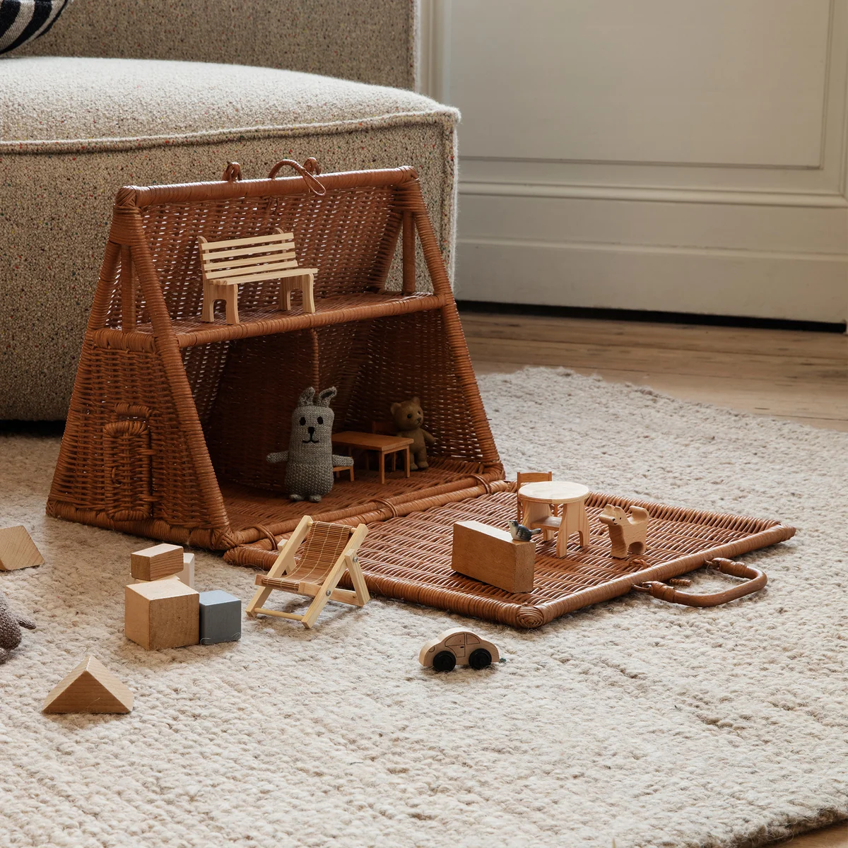 Draagbaar speelhuisje gemaakt van handgeweven rotan