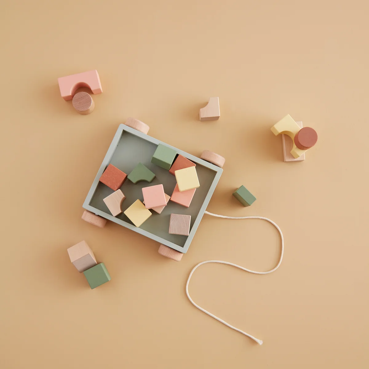 De Edvin trolley met houten blokken van Kids Concept is gemaakt van natuurlijk hout en wordt geleverd met 20 gebeitste houten blokken, waarmee twee tijdloze speeltjes in één pakket worden gecombineerd. Kinderen zullen genieten van het trekken van hun favoriete speelgoed in deze houten trolley. De rubberen ringen op de wielen minimaliseren niet alleen het geluid, maar beschermen ook de vloer. De set biedt ook de mogelijkheid om te spelen en te bouwen met de houten blokken. De houten blokken zijn verkrijgbaar in verschillende vormen en maten, zodat ze makkelijk hanteerbaar zijn voor kleine handjes.