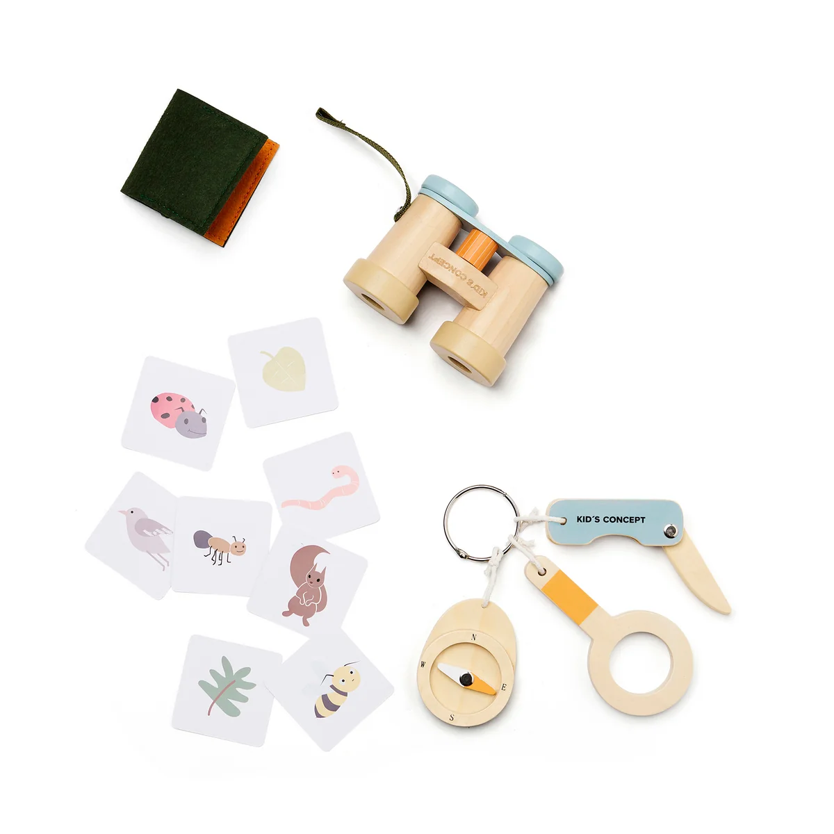 De Kid's Hub expeditieset van Kids Concept bevat alles wat jonge natuuronderzoekers nodig hebben om hun omgeving te verkennen en spannende ontdekkingen te doen. Met een hoogwaardige verrekijker, een handig zakmes, een krachtige loep, een nauwkeurig kompas, 8 gelamineerde ontdekkingskaarten en een opvouwbare kaarthouder zijn de mogelijkheden eindeloos.