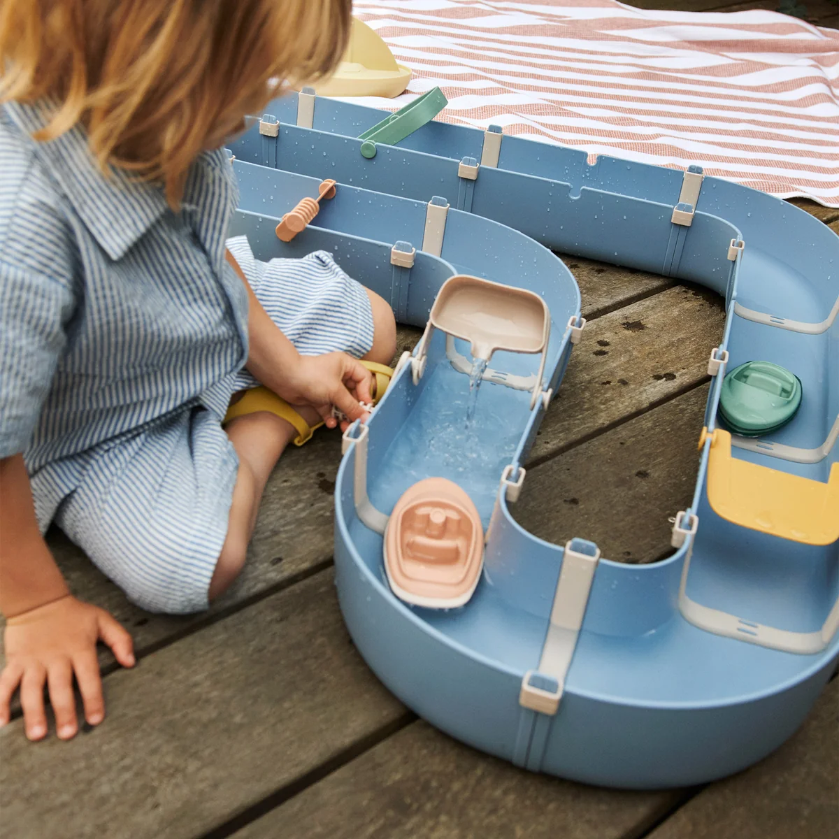 De Cassian waterloop van LIEWOOD nodigt kinderen uit om fantasierijk met water te spelen. Het doordachte insteeksysteem maakt het mogelijk om individuele waterlopen steeds opnieuw te bouwen, te herbouwen en opnieuw vorm te geven. Spelenderwijs water gieten, sturen en observeren stimuleert de motoriek, creativiteit en het logisch denken. Dankzij het robuuste materiaal is de waterweg ideaal voor gebruik in de tuin, op het balkon of in bad. Een door en door duurzaam speeltje dat zorgt voor langdurig speelplezier op warme dagen.