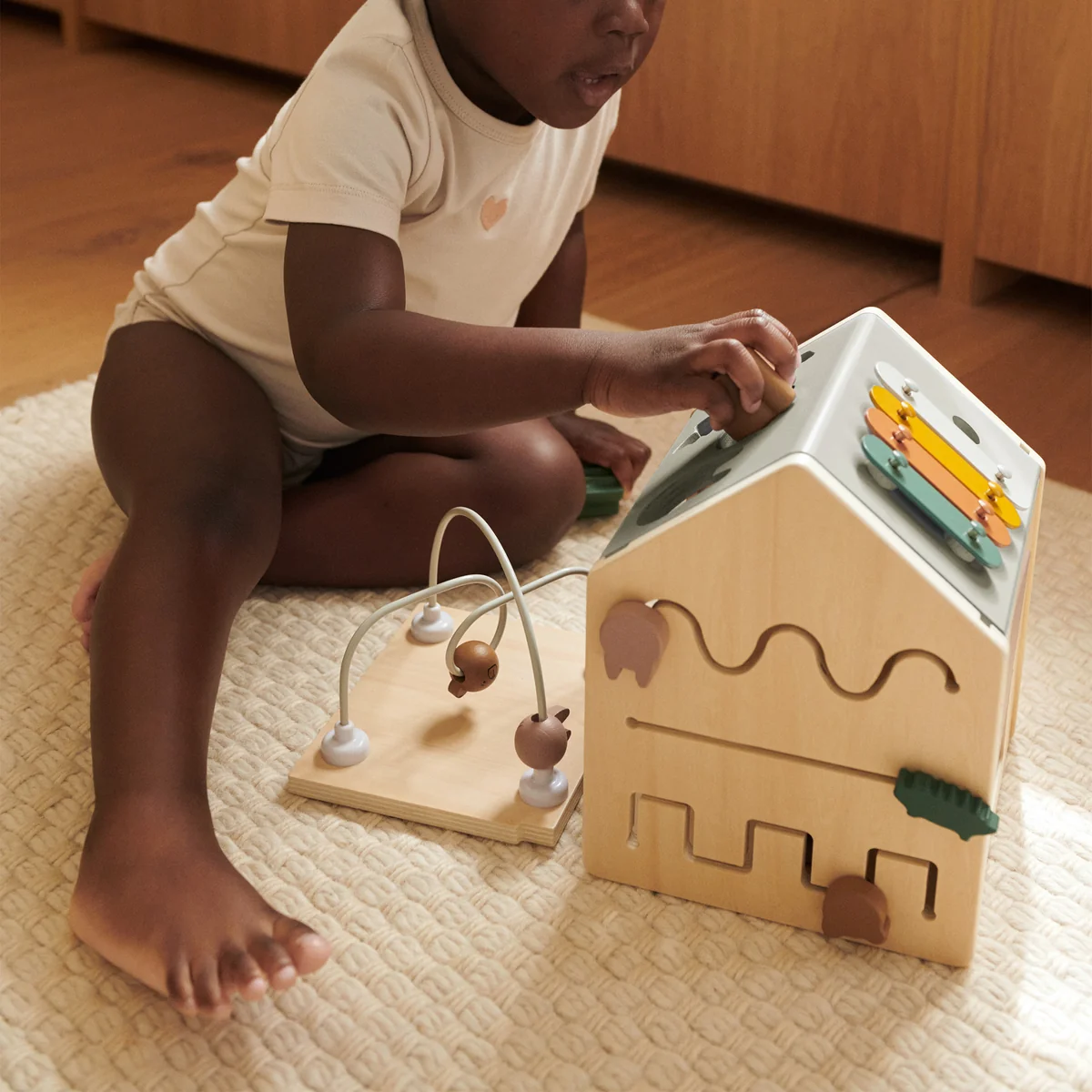 Het minimalistische, zachtgekleurde ontwerp past harmonieus in elke kinderkamer en maakt van Lucas ook een stijlvol, functioneel speelaccessoire. Robuust vakmanschap en hoogwaardige materialen zorgen ervoor dat het activiteitenspeelgoed zelfs bestand is tegen kleine dagelijkse avonturen.