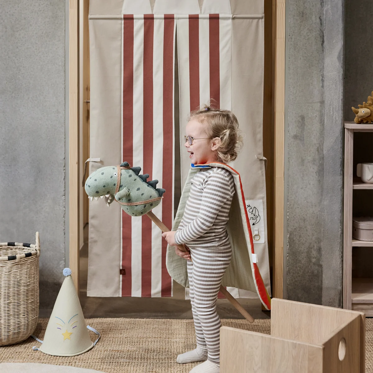 OYOY Met de kasteel-speeldeur stap je een wereld vol avontuur binnen. Gemaakt van duurzame katoenen stof en robuust dennenhout, inspireert dit betoverende speelgoed creativiteit en ontdekking bij kinderen van alle leeftijden. Als op zichzelf staand speelaccessoire of als onderdeel van een grotere speelruimte, nodigt de kasteeldeur jonge geesten uit om talloze denkbeeldige avonturen te beleven.
