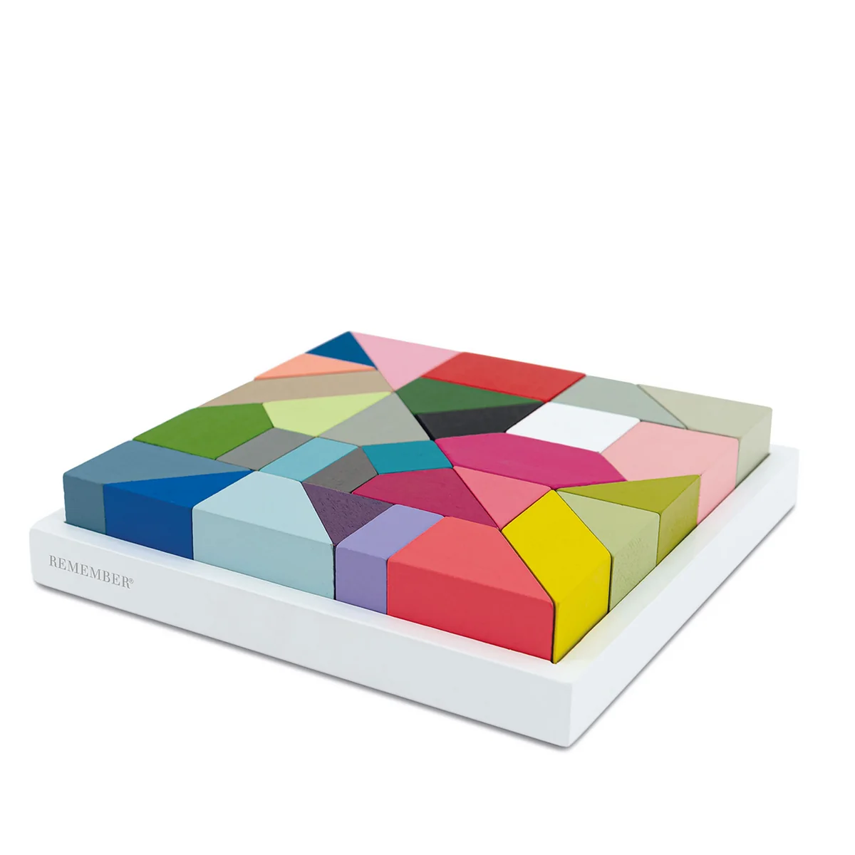 De houten puzzel Thirty van Remember is een creatieve bouwset bestaande uit 30 bouwstenen in 30 kleuren die eindeloze mogelijkheden bieden.