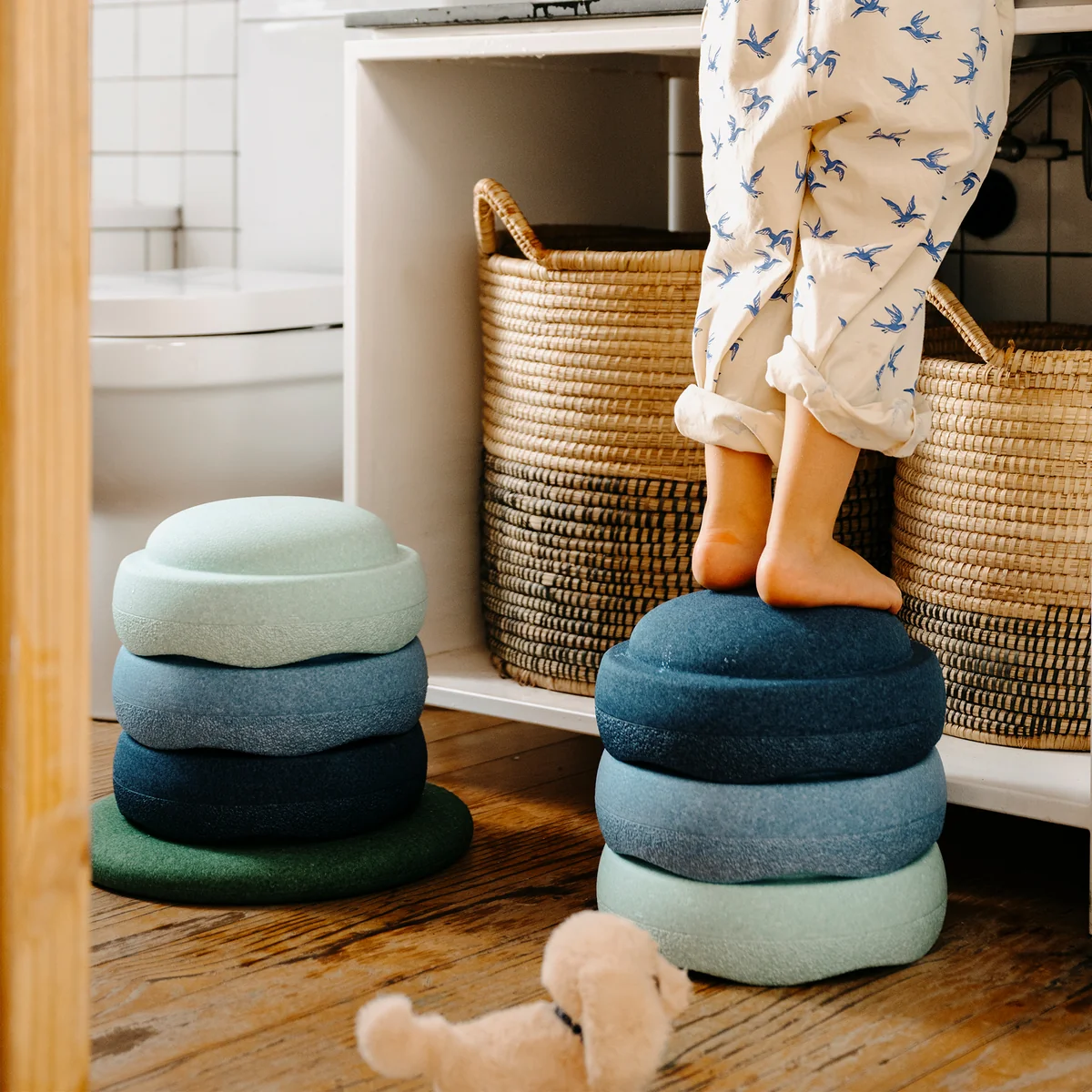 De Stapelstein® Waters & Greens set is ideaal voor dynamisch zitten of actieve balansoefeningen. De zithoogte van de kleurrijke steen kan individueel worden aangepast. Als de stapelstenen op elkaar gestapeld worden, neemt de moeilijkheidsgraad automatisch toe.
