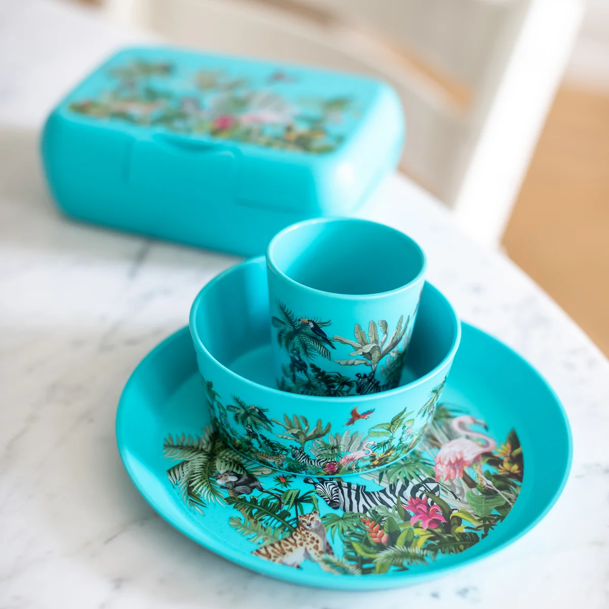 De Connect kinderserviesset is gemaakt van bio-cirkelmateriaal en hout. Vaatwasmachinebestendig, BPA- en melaminevrij.