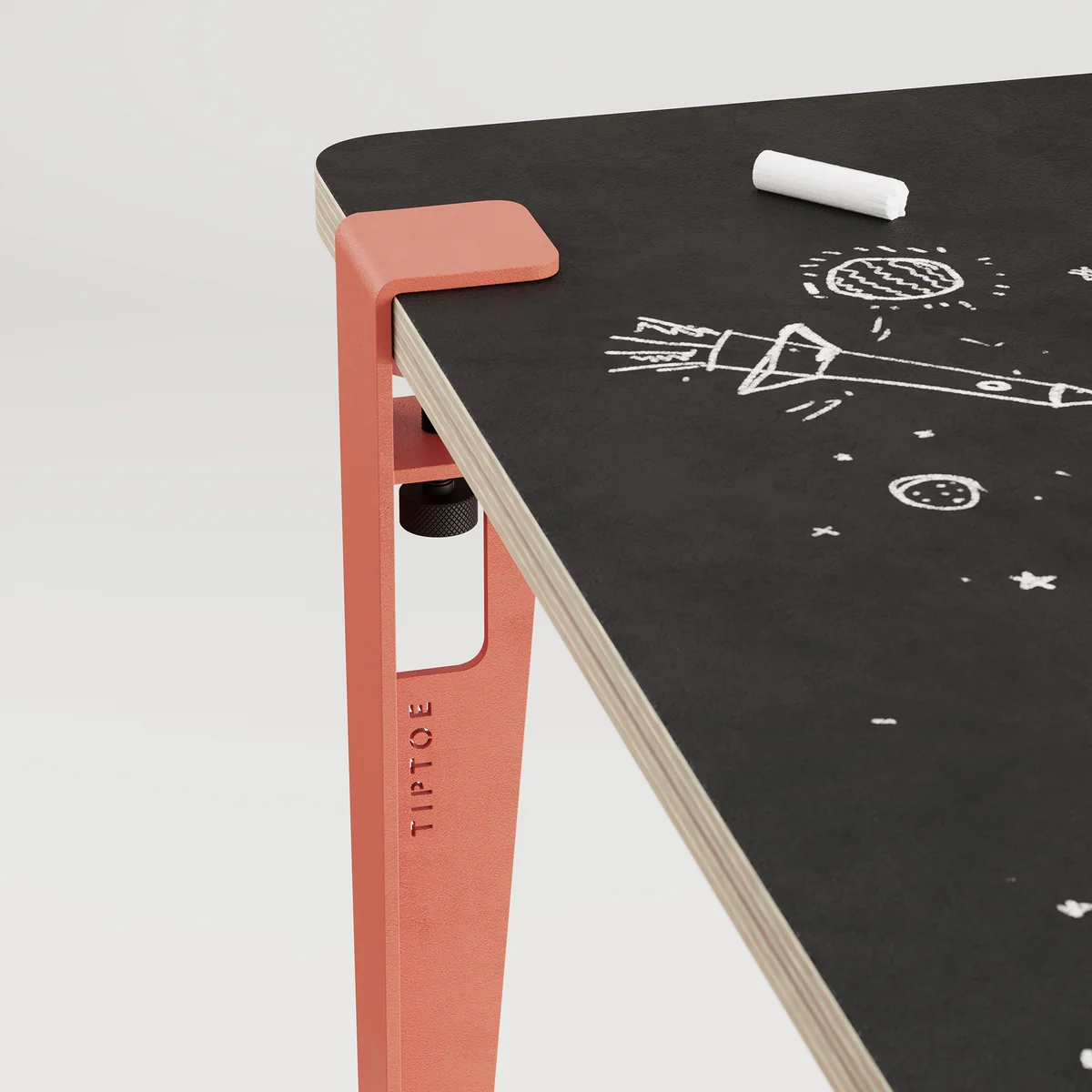 Het kinderbureau Slate Vice Versa van de Franse fabrikant TipToe voegt een creatief tintje toe aan elke kinderkamer! Het functionele en tijdloze bureaublad is gemaakt van eco-gecertificeerd hout met een leistenen coating. Hierdoor kunnen kinderen en volwassenen met krijt tekenen en schrijven. De tafelpoten en steunen zijn gemaakt van recyclebaar staal. De tafel is ideaal voor kinderen van 3 tot 6 jaar.