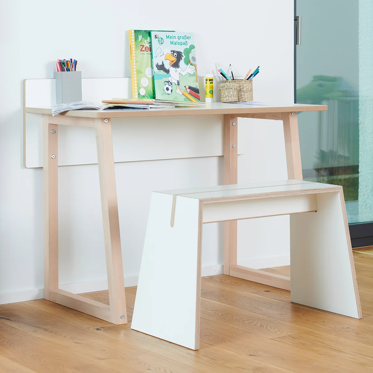 De werk Het kinderbureau is gemaakt van gecoate MDF platen en natuurlijk beuken.