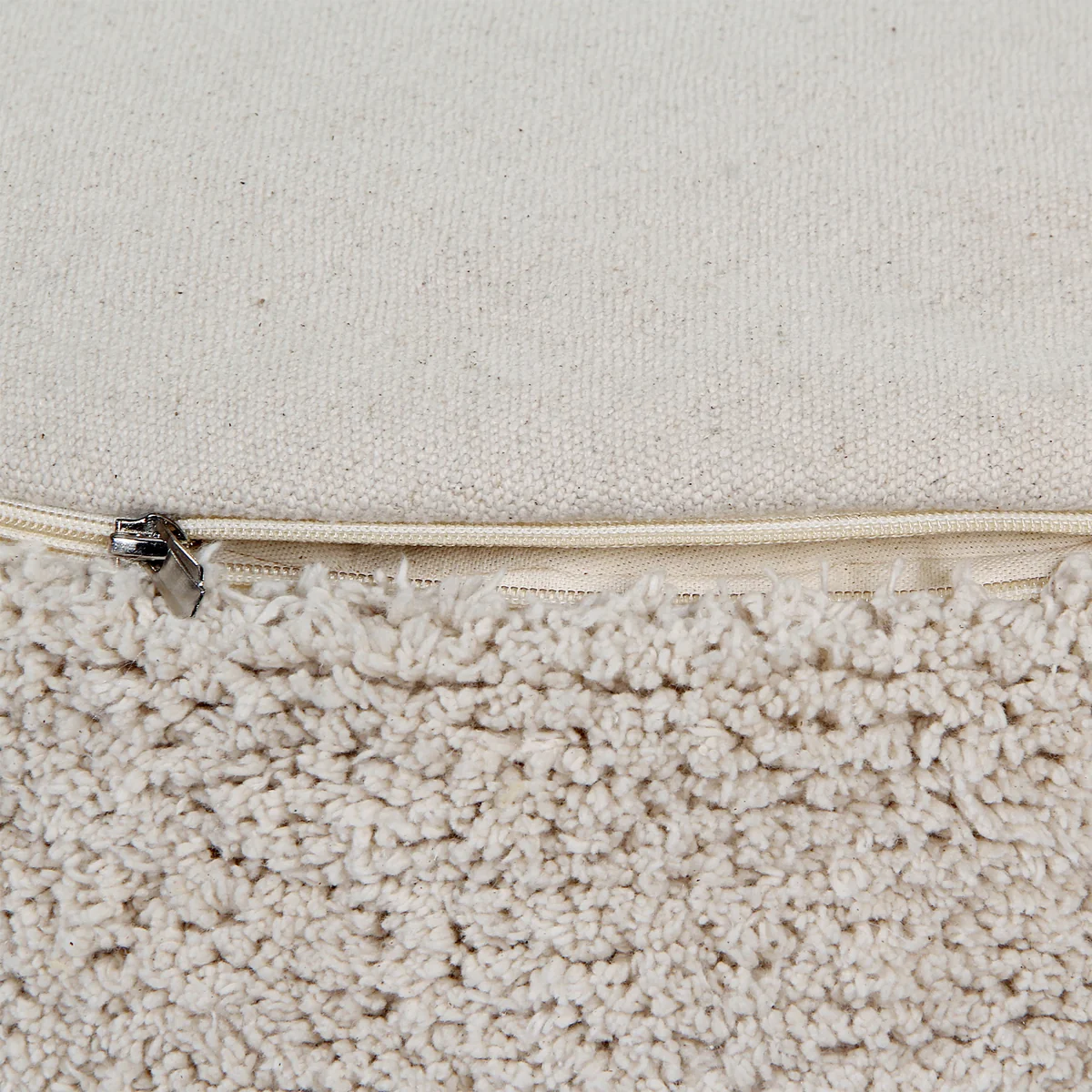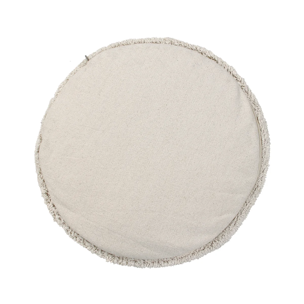 De poef is gemaakt van katoen en polystyreen en kan gewassen worden in de wasmachine.