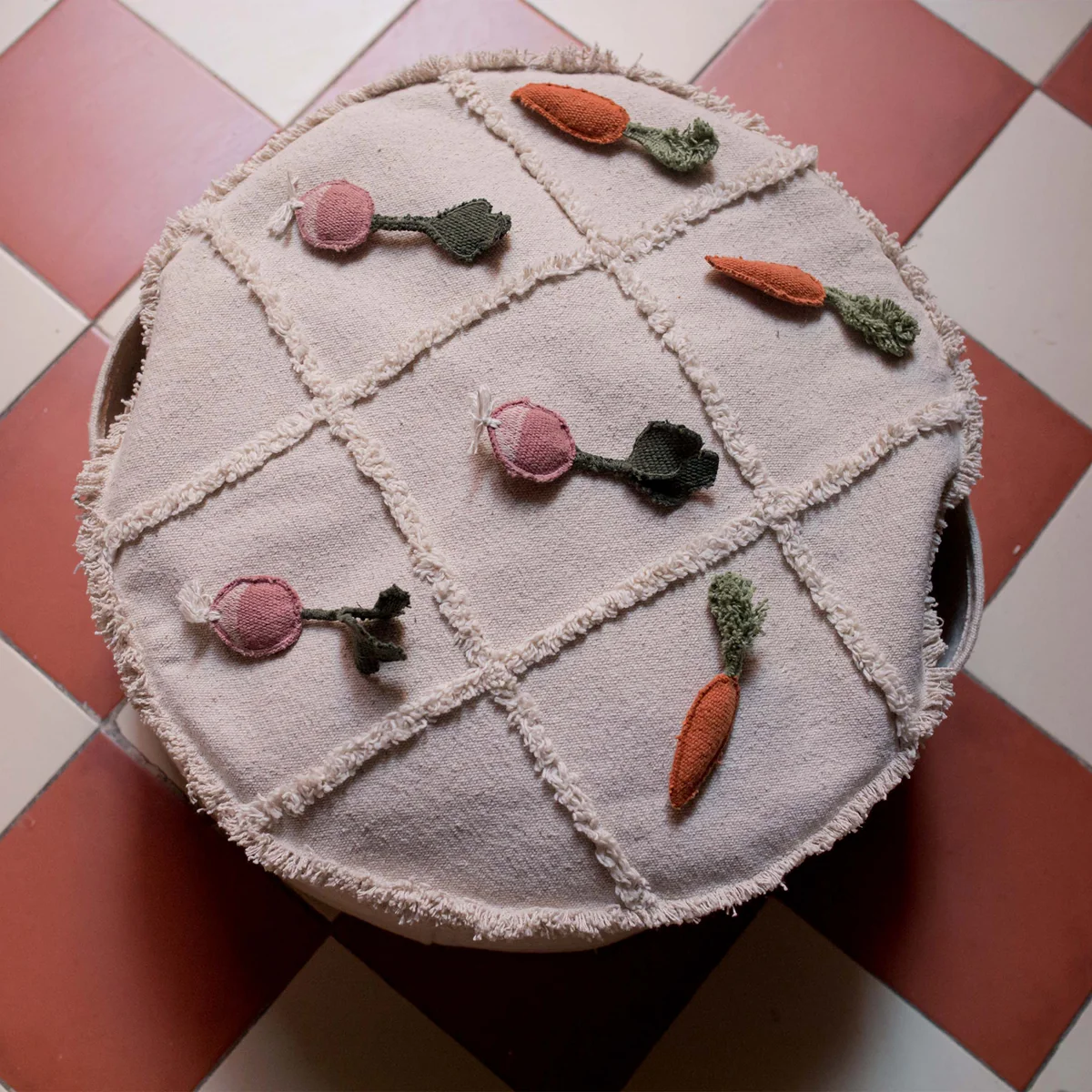 De Tic-Tac-Toe Poef van de Spaanse fabrikant Lorena Canals biedt plezier en spel voor het hele gezin. De poef maakt deel uit van de collectie van het moeder-dochter duo Oli & Carol. De mini-stofpoefjes dienen als speelstukken en kunnen zo vaak als gewenst worden gebruikt. De hoes van de poef is gemaakt van katoen en gevuld met polystyreen kralen.