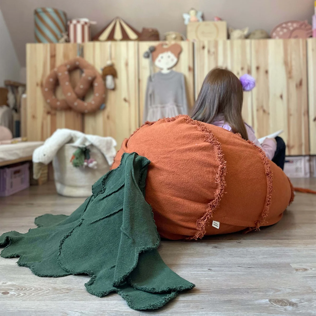 De zitzak Cathy the Carrot van de fabrikant Lorena Canals is absoluut fantastisch met zijn schattige ontwerp! Cathy the Carrot maakt deel uit van de moeder-dochter samenwerking van Oli & Carol, die de moestuin in de kinderkamer wil brengen. De zitzak is gemaakt van katoen en polystyreen kralen.