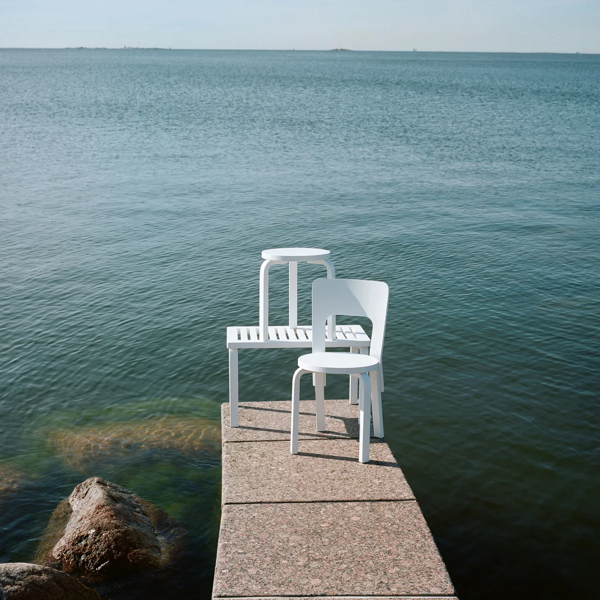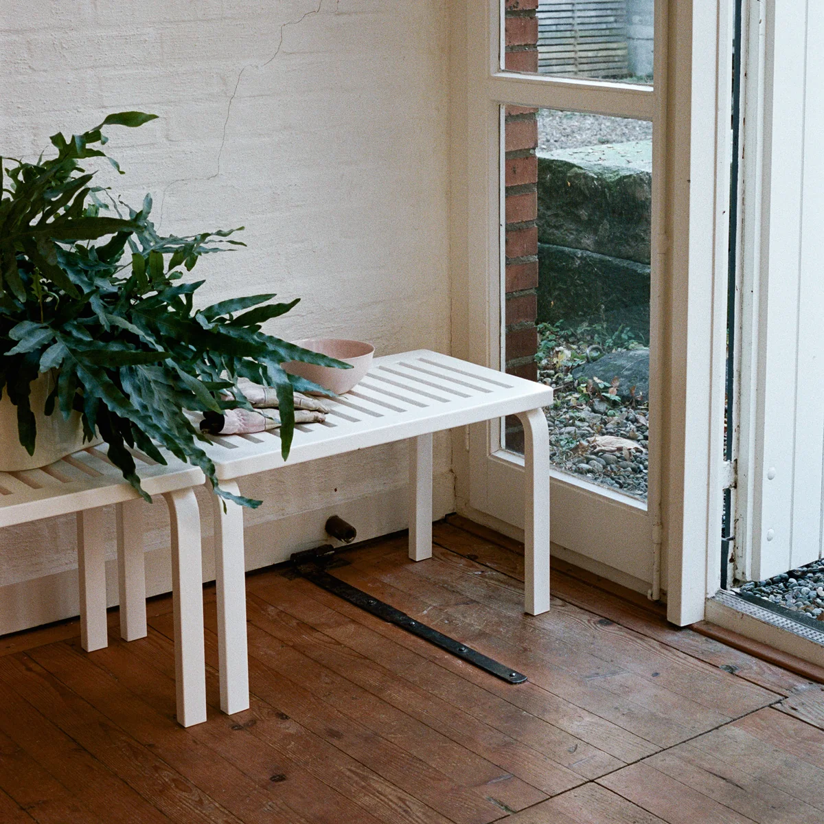 Dankzij het baanbrekende L-pootsysteem van Alvar Aalto kunnen de poten direct op de zitting worden gemonteerd zonder ingewikkelde bevestigingsmiddelen. Bench 153, ontworpen in 1945 door Alvar Aalto, is een late en populaire toevoeging aan de L-poot collectie.