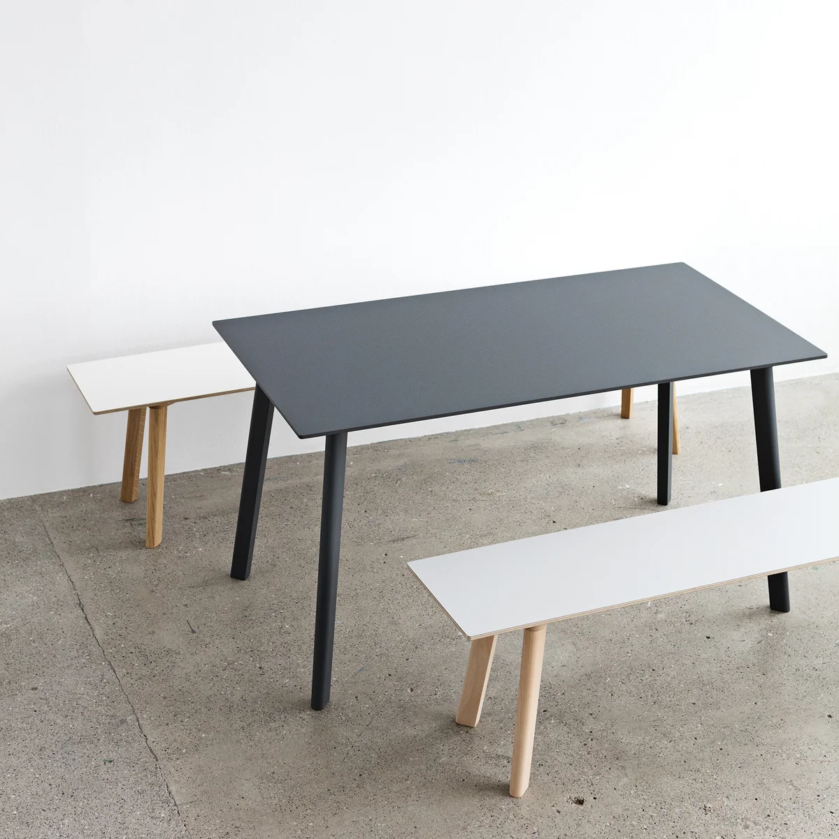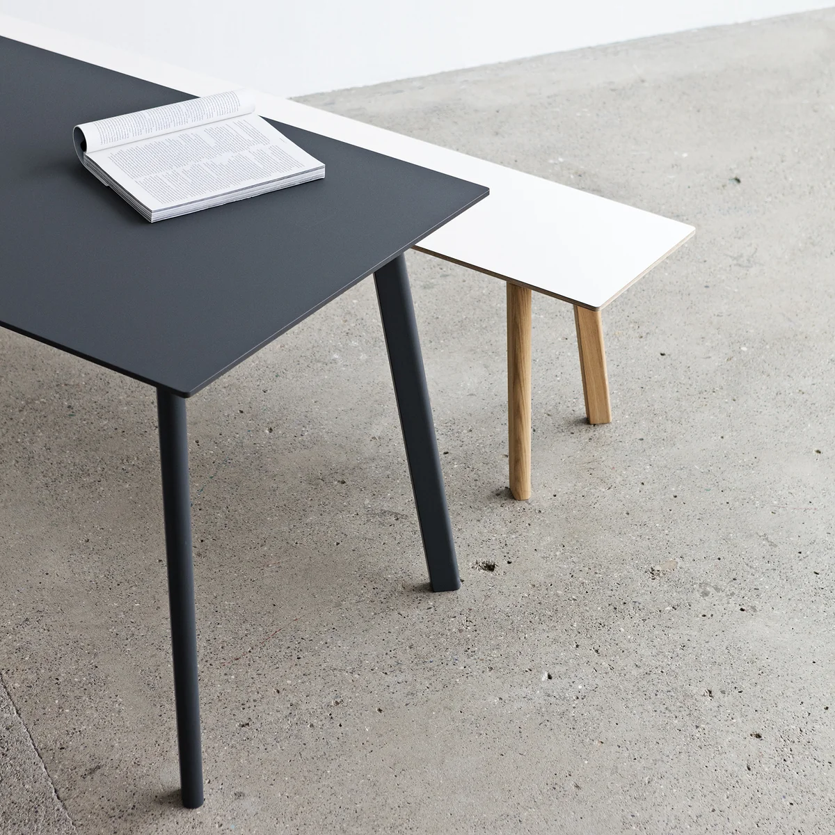 De Copenhague CPH Deux 215 Bench van HAY is een meubelstuk dat qua vormtaal en materiaalkeuze perfect aansluit bij het Scandinavische design. De gebroeders Ronan en Erwan Bouroullec werden door de Deense fabrikant HAY uitgenodigd om een meubelcollectie voor de Universiteit van Kopenhagen te ontwerpen. Het zou functioneel en minimalistisch worden - maar door het huiselijke karakter passen de minimalistische stukken van de serie ook perfect in een privéwoning.