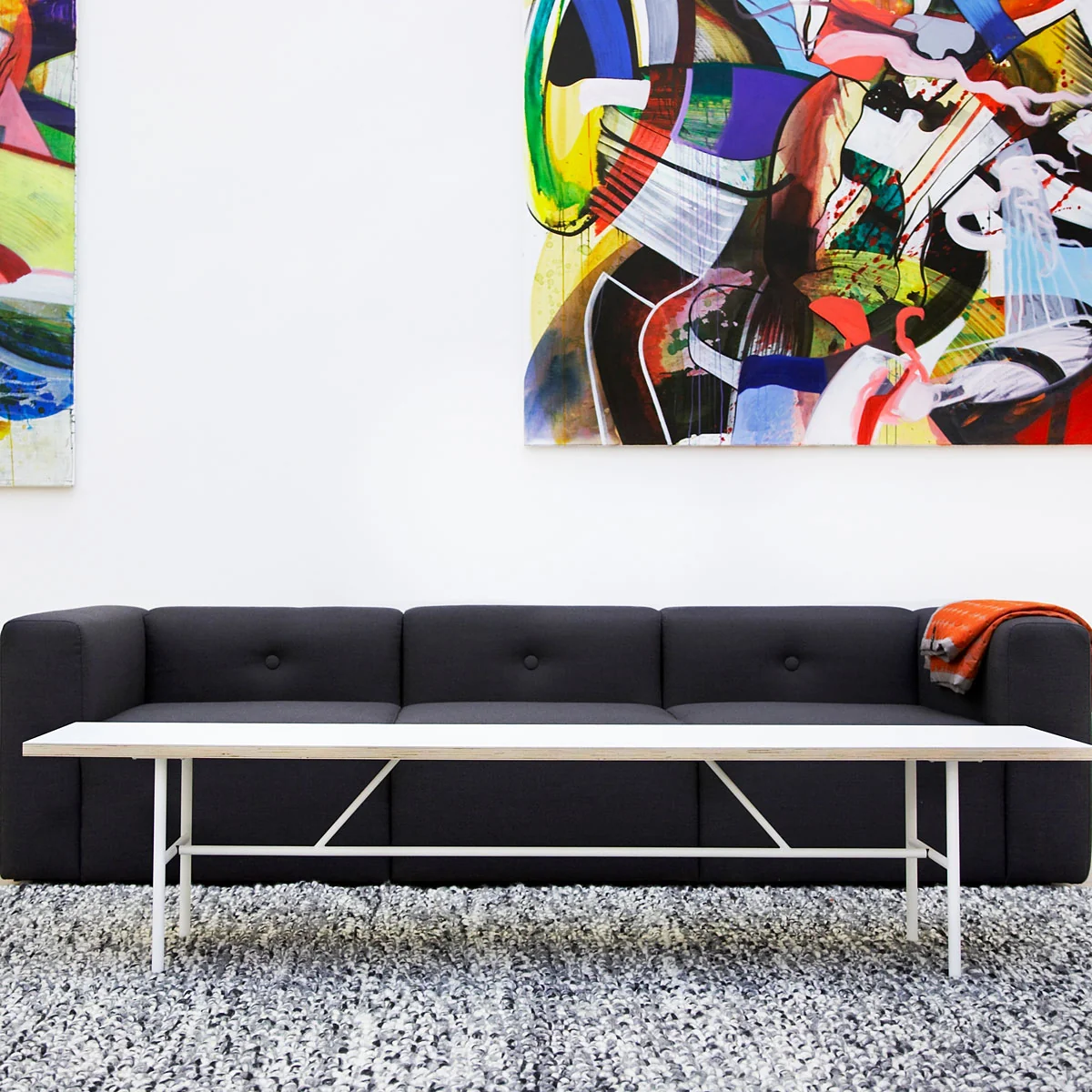 De HAY Mags 2,5-zitsbank bestaat uit twee modules. Samen met de hoek- en chaise longue-modules kan iedereen echter zijn eigen bank ontwerpen voor elke ruimte en elke gelegenheid. Op aanvraag Mags ook verkrijgbaar met sierknopen in de bekleding.