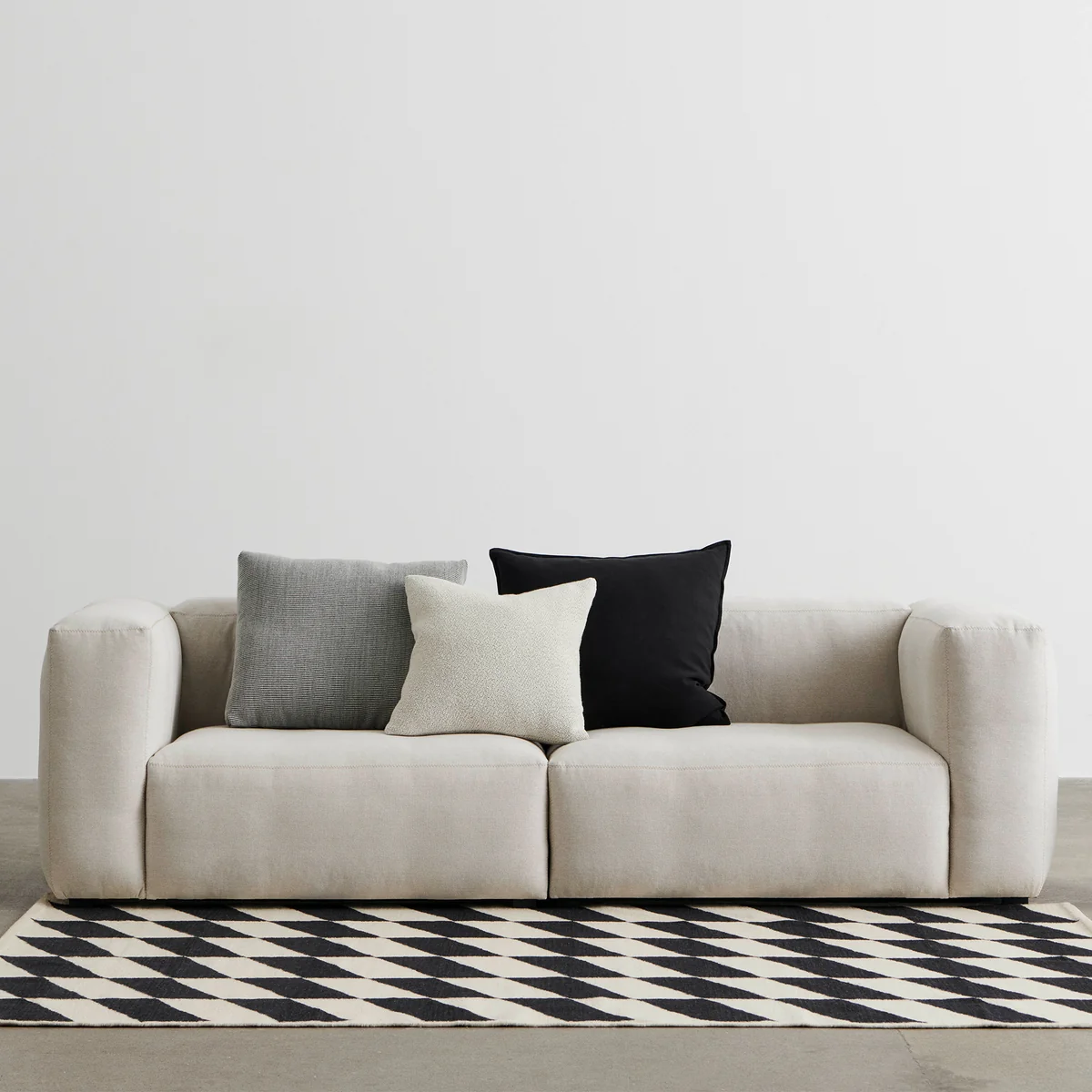 De HAY Mags 2,5-zitsbank bestaat uit twee modules. Maar samen met de hoek- en chaise longue-modules kan iedereen zijn eigen bank ontwerpen. Niet alleen zijn de modules vrij te kiezen, maar je kunt ook kiezen uit verschillende Kvadrat stoffen, een leren bekleding en sierstiksels in verschillende kleuren.