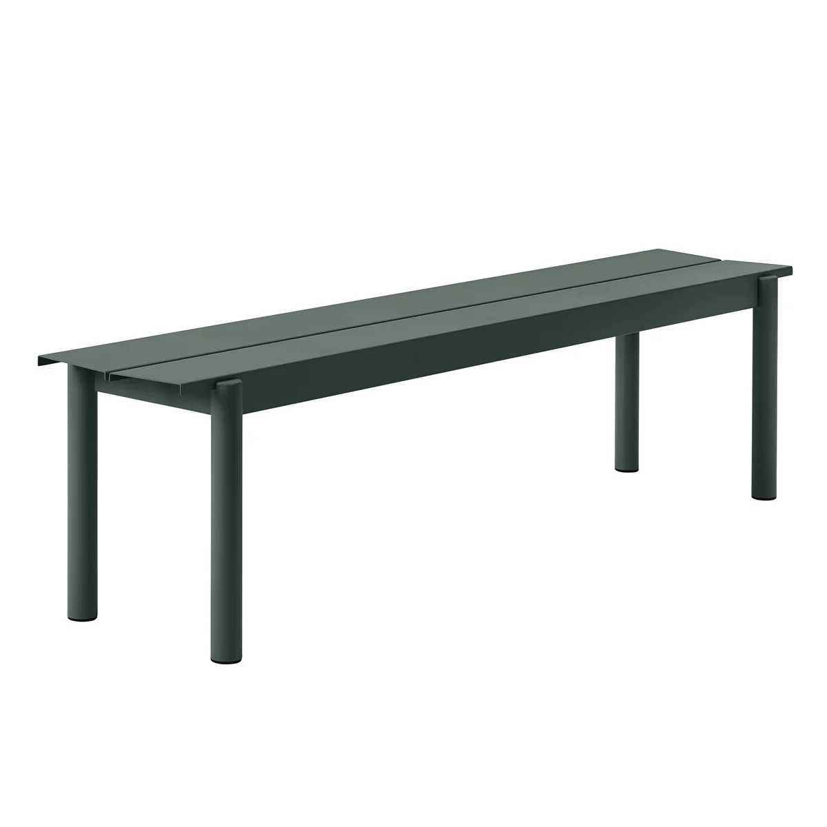 De bank is beschikbaar Linear Steel bank van Muuto is verkrijgbaar in verschillende sterke en ingetogen kleuren. Met de bijpassende Linear Steel tafel om een harmonieuze zitset voor de buitenruimte te creëren.