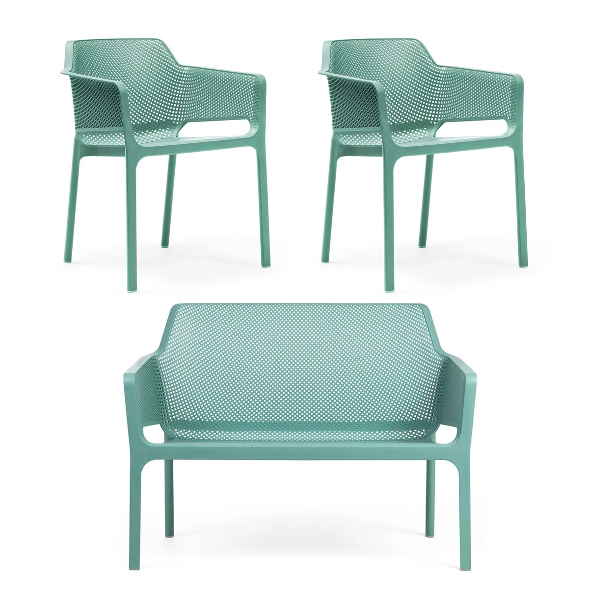 De Net fauteuil ontworpen door Raffaello Galiotto is verkrijgbaar in verschillende kleuren met mat effect, die perfect met elkaar en met andere tuinmeubelen van Nardi gecombineerd kunnen worden. Bijpassende kussens zijn apart verkrijgbaar.