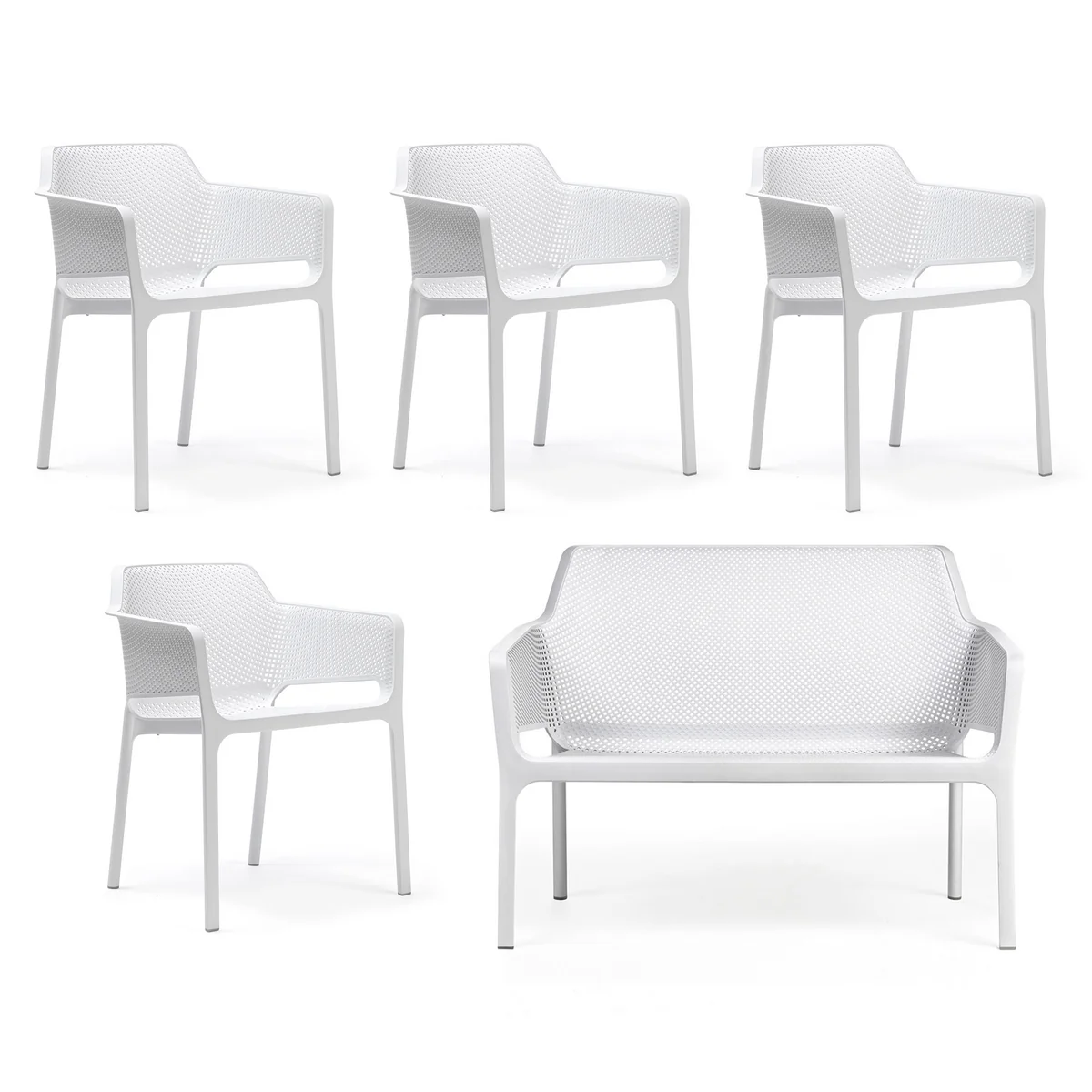 De Net fauteuil ontworpen door Raffaello Galiotto is verkrijgbaar in verschillende kleuren met mat effect, die perfect met elkaar en met andere tuinmeubelen van Nardi gecombineerd kunnen worden. Bijpassende kussens zijn apart verkrijgbaar.