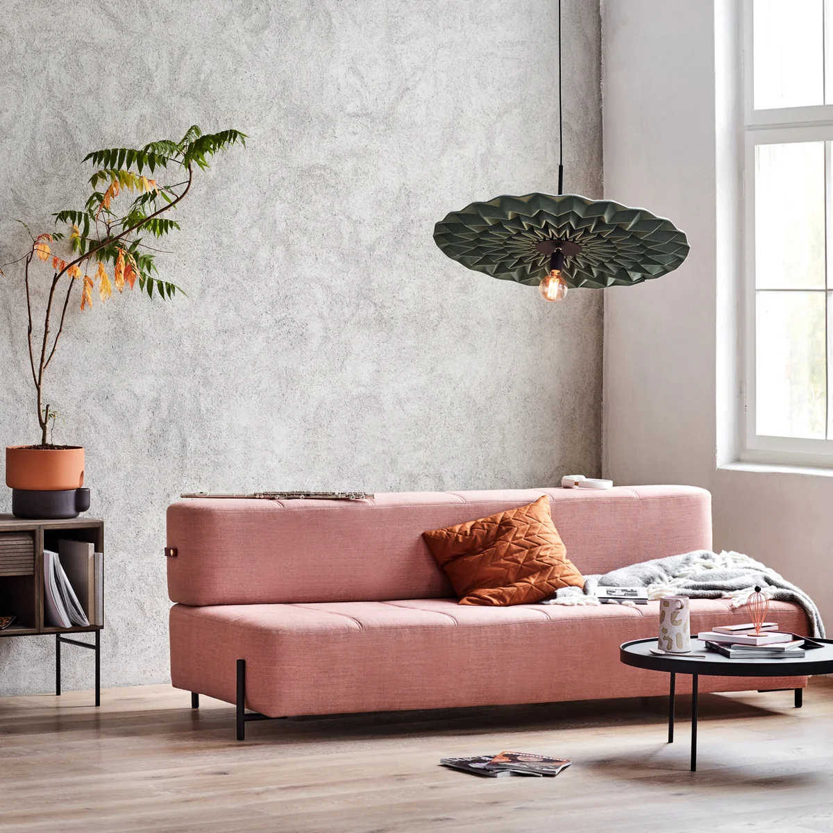 Het ontwerp van Daybe wordt gekenmerkt door rechttoe rechtaanheid en Scandinavische terughoudendheid, waarvoor het ontwerpteam Morten & Jonas verantwoordelijk is. Met gedefinieerde randen, discrete poten en fijne details - zoals het licht gewatteerde oppervlak - past de Daybe-slaapbank perfect in elke sfeer zonder opdringerig te zijn.