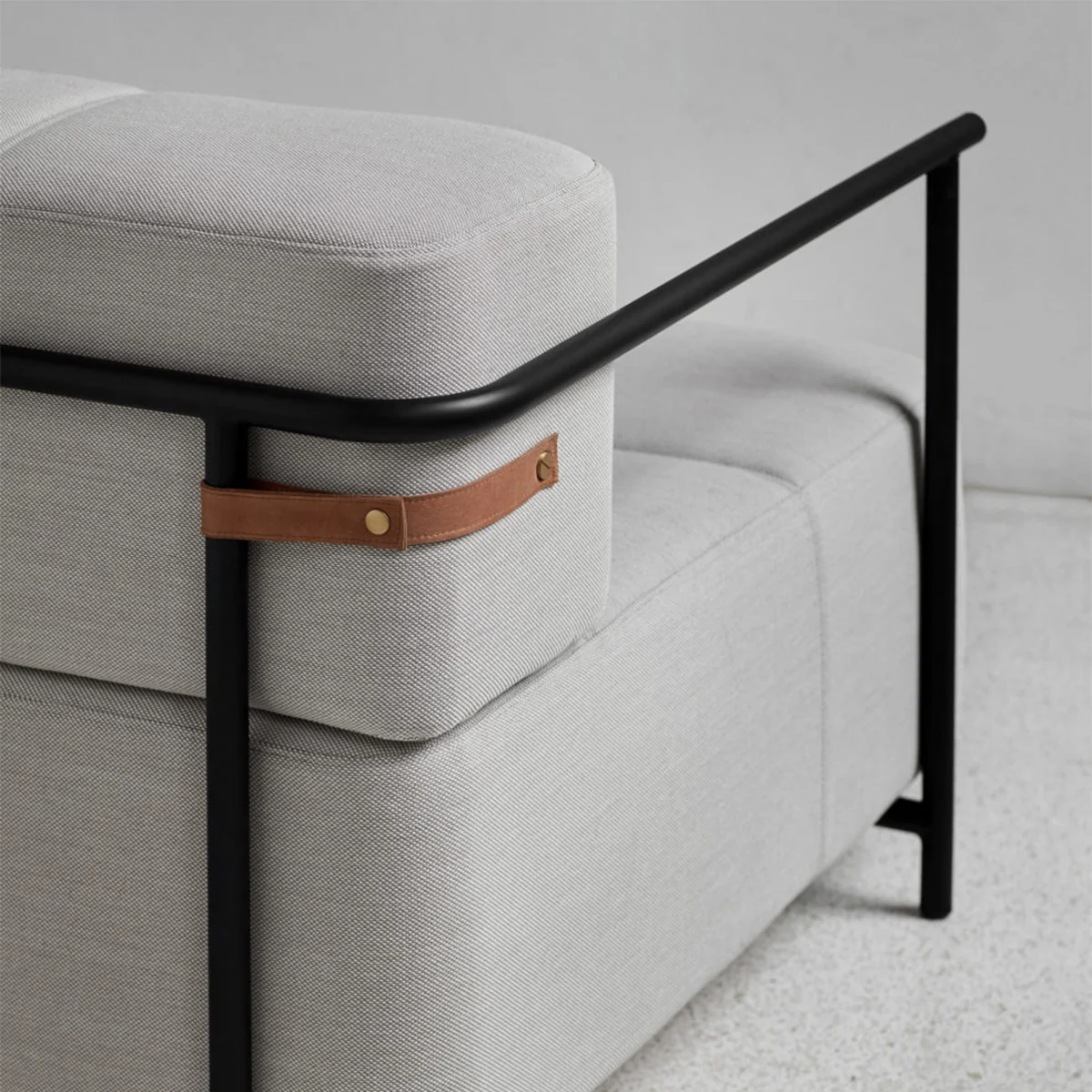 De moderne slaapbank is beschikbaar met of zonder armleuningen en op aanvraag in andere kleuren en stoffen.