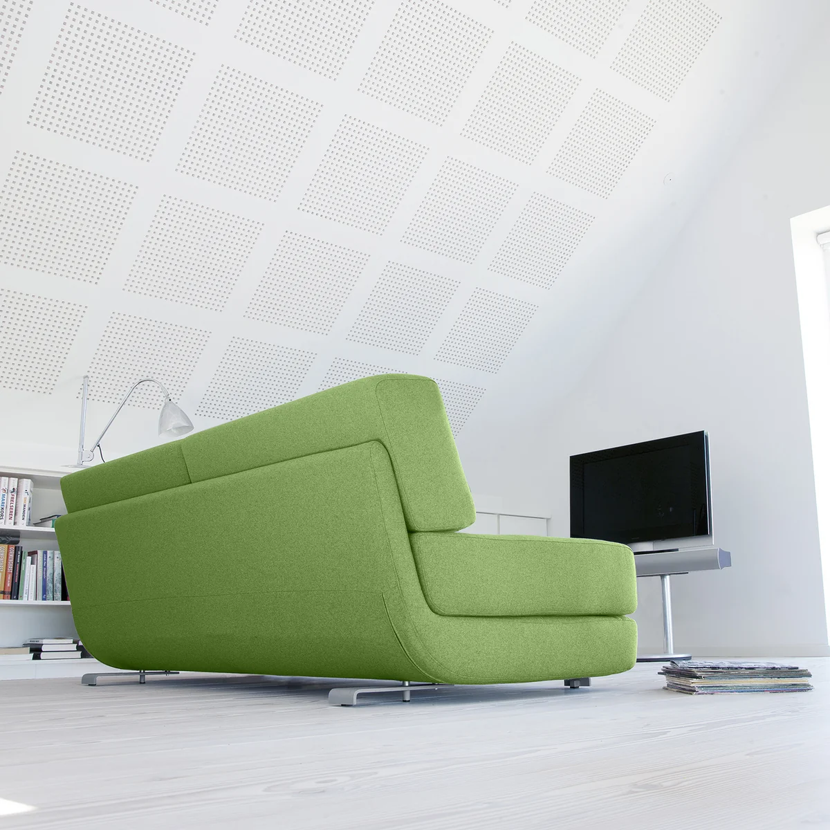 De Lounge 3-delige bedbank van de Deense design smithy Softline is een bank die dankzij de individueel instelbare rugleuning (korte zitting en lage rugleuning of diepe zitting en hoge rugleuning) een uitzonderlijk zitcomfort biedt. Tegelijkertijd is het een bed waarop het heerlijk ontspannen is en heerlijk slapen is. Tenslotte verhoogt de Nozag-feathering van de zitting het zitcomfort enorm. Om de zitting te borstelen en te stofzuigen, kan de coating gemakkelijk worden verwijderd.