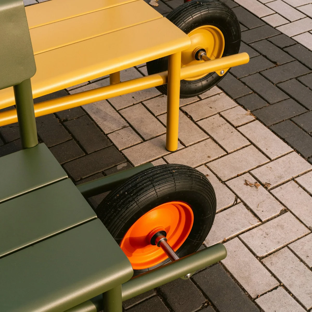- Flexibel ontwerp: bank met kruiwagenwiel voor eenvoudige verplaatsing